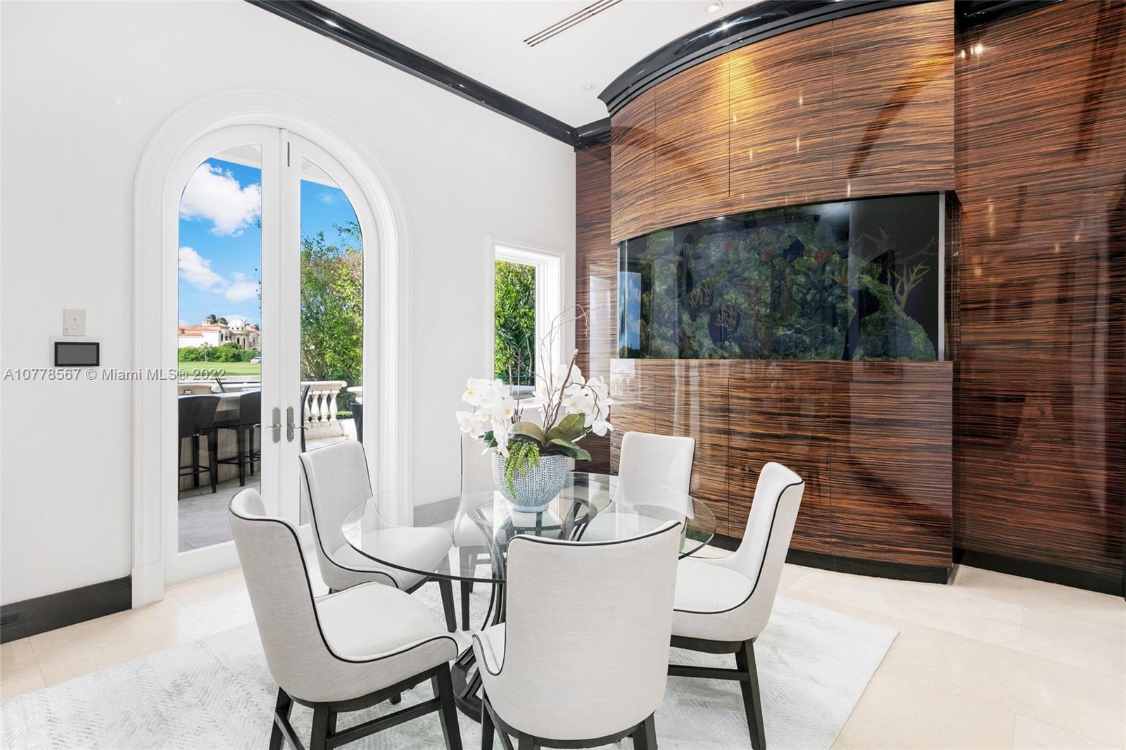 Absolutely unparalleled in finishes, appointments & furniture, this 12,879 SF palatial estate is designed like no other. Villa Magnolia sits upon 221 ft of wide waterfront with nw exposure, offering a front-row seat to dazzling sunsets. Private gates open to reveal a majestic Neoclassical home towering above verdant foliage. Enter into a rotunda foyer w/ a soaring 40-foot ceiling, curved marble & a striking two-sided staircase w/ white gold leaf bannisters. Unique features include hand-crafted stone throughout, European paint finishes, 15-foot coffered ceilings, 2-infinity edge pools, one just off the principal suite, 3rd level rooftop entertaining terrace, temperature-controlled 850-bottle wine room, gourmet kitchen w/ a built-in 750-gallon aquarium, movie theatre & glass elevator.