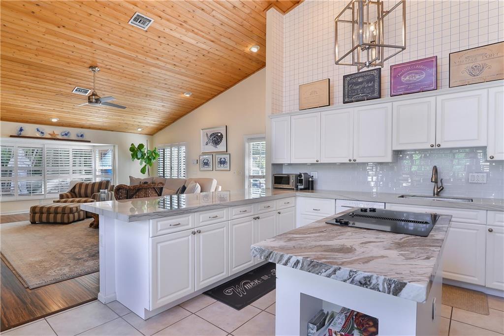 FANTASTIC PRICE REDUCTION! BEAUTIFULLY UPDATED and cared for, this GORGEOUS family home is the one! HUGE sun-filled rooms with fabulous soaring wood ceilings! Charming french doors lead to tropical, resort-style HEATED SALT WATER POOL, spa, MARBLE PATIO, summer kitchen and built-in gas grill! Multi-level patio with covered pergola is great for entertaining! CUSTOM WOOD PLAYHOUSE with sleeping loft and front porch is perfect for little ones! This home has a cozy, wood-burning fireplace, NEW water heater, NEW electrical panel, 3 NEW A/C units, NEWLY painted exterior, 50k of mature landscaping, 5k landscape lighting and pet-safe FULLY FENCED YARD! HUGE marble driveway with basketball hoop fits 6 cars/boat. A-rated schools and NO HOA! An incredible family neighborhood and an incredible home!