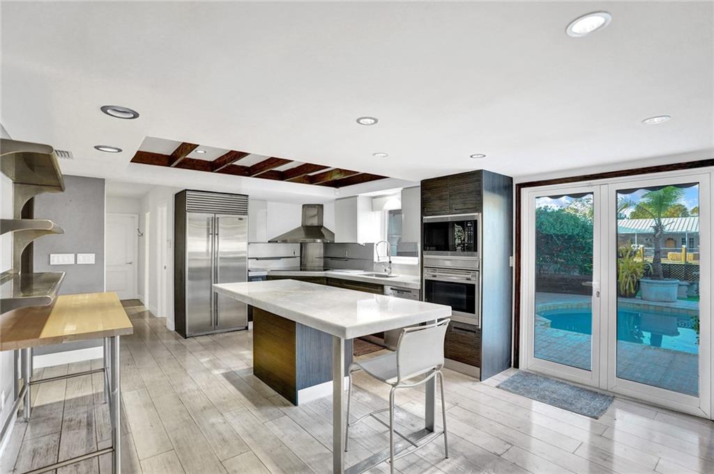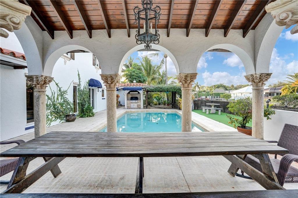 Stunning 4 bedroom gated estate in the heart of Fort Lauderdale. Interior point lot surrounded by 195’ waterfront with ocean access. Bright and open living space with beautiful pool and water views. Hardwood and marble flooring throughout. Gourmet kitchen boasts wood cabinetry, hi-end stainless steel appliances and marble countertops. Big master suite has sitting area and spa like bath with separate tub and shower. Large secondary bedrooms. Backyard oasis features pool, built-in bbq, pavilion and more. 2 ton boat lift and seawall 3 years old. This home is a must see!