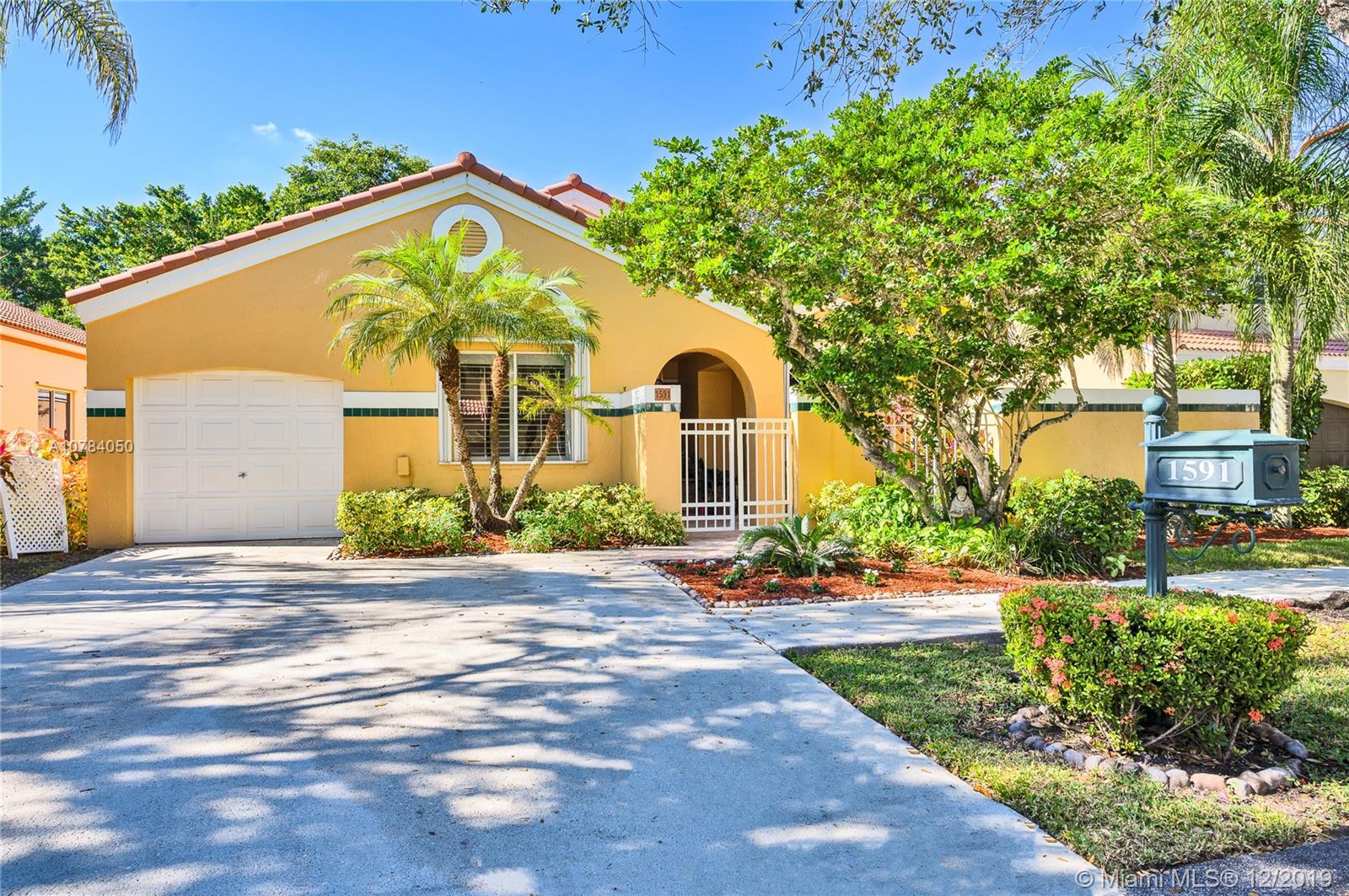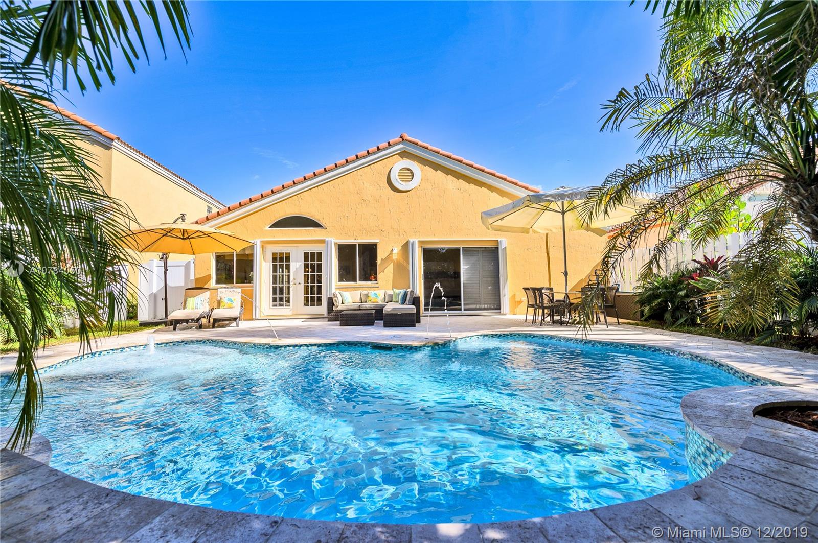 *Unique home in the heart of Weston* Stunning rare find, split bedroom plan, high vaulted ceilings, *Bright and open* Spectacular free form salt water pool, with lovely waterfalls & beach area. Pool with special lighting system, smart home controlled. Elegant travertine marble around pool and patio. Peaceful tropical gardens surrounds the fenced yard. Bedrooms are very spacious. Second bedroom access an atrium. Master bedroom overlooks the beautiful pool and garden. Lovely kitchen with breakfast area, granite countertops and top of the line Kitchenaid stainless steel appliances *French doors* Plantation shutters, crown molding *Accordion shutters* New Roof installed 2011. Gated community. Walking distance to Weston Towncenter and Elementary School. Hurry, this amazing home will not last!