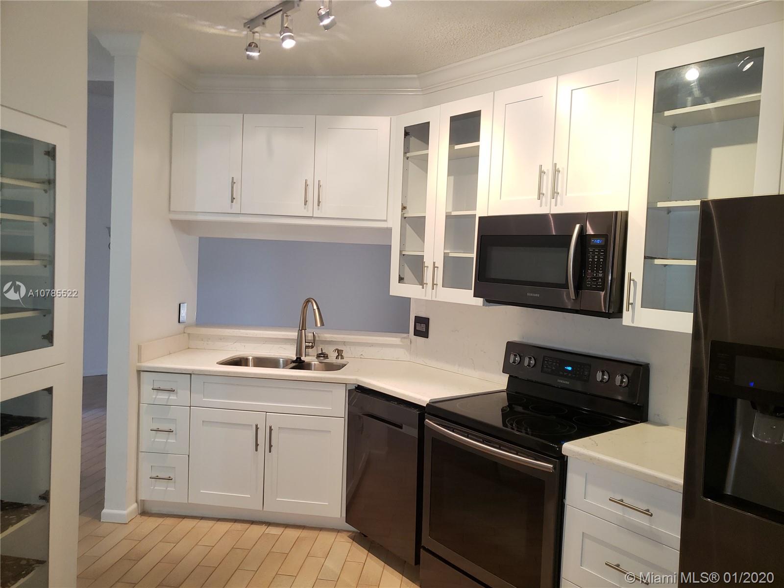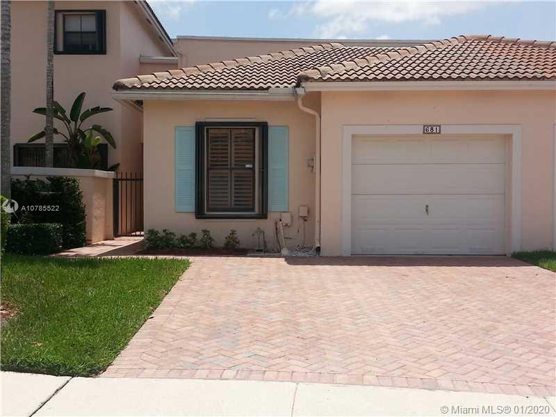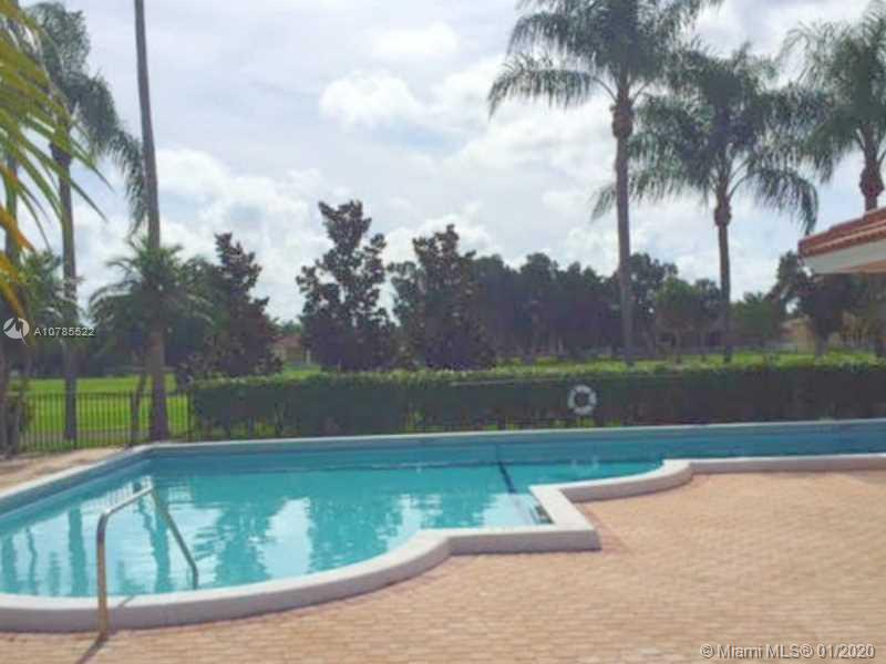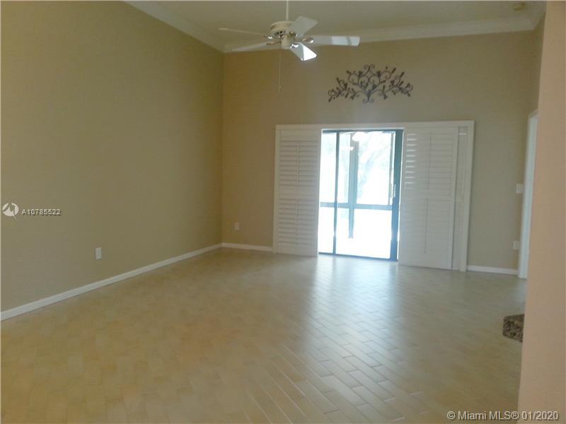 Superb one story remodeled 3 bedroom, 2 bath villa town home directly on the golf course in manned gated resort-level Grand Palms Golf Resort community in western Pembroke Pines. Fully screened covered patio with superb golf views. Remodeled kitchen w/wood cabinetry, black stainless steel appliances and quartz countertops. Volume ceilings, crown molding, plantation shutters, tile floor. 2 car driveway, 1 car garage with built-in storage. Accordion shutters, extended brick paver patio. Newer A/C, roof. Walk to pool, spa, golf clubhouse, fitness center, shopping, dining, entertaining. Close to I-75 for easy commutes in every direction. Pool, cable and alarm system incl in HOA fees.