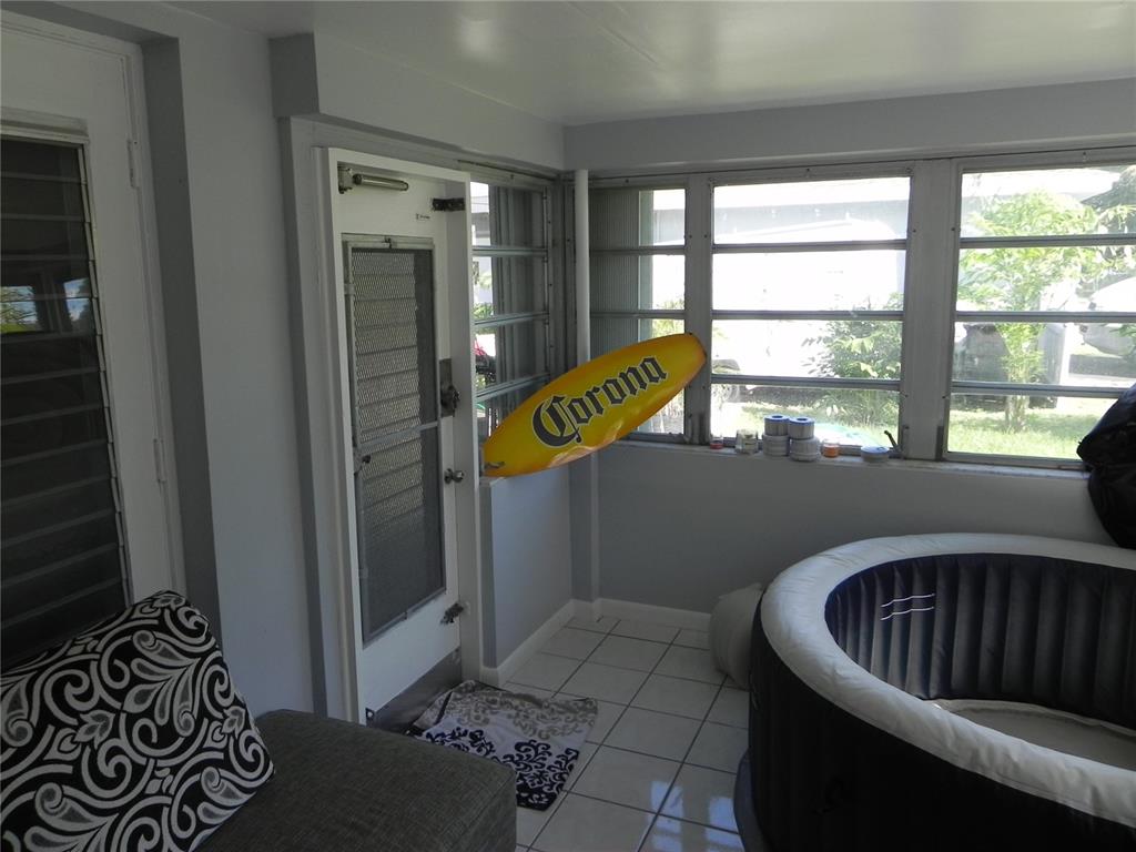 HURRY !PRE-FORCLOSURE! VERY COOL 2 BEDROOM 1 BATHROOM HOUSE ON LARGE CORNER LOT ACROSS FROM PARK, FLA ROOM WITH JACUZZI, SEPERATE LAUNDRY ROOM, SCREENED PATIO, 2 TRAVERTINE PATIOS, MODERN LOOK KITCHEN WITH CORIAN COUNTER TOPS AND BAR, STAINLESS APPLIANCES, BUILT IN CABINATRY AND LOTS OF CLOSETS NOOKS AND CRANNYS. ACCORDIAN HURRICANE SHUTTERS ALL THE WAY AROUND.