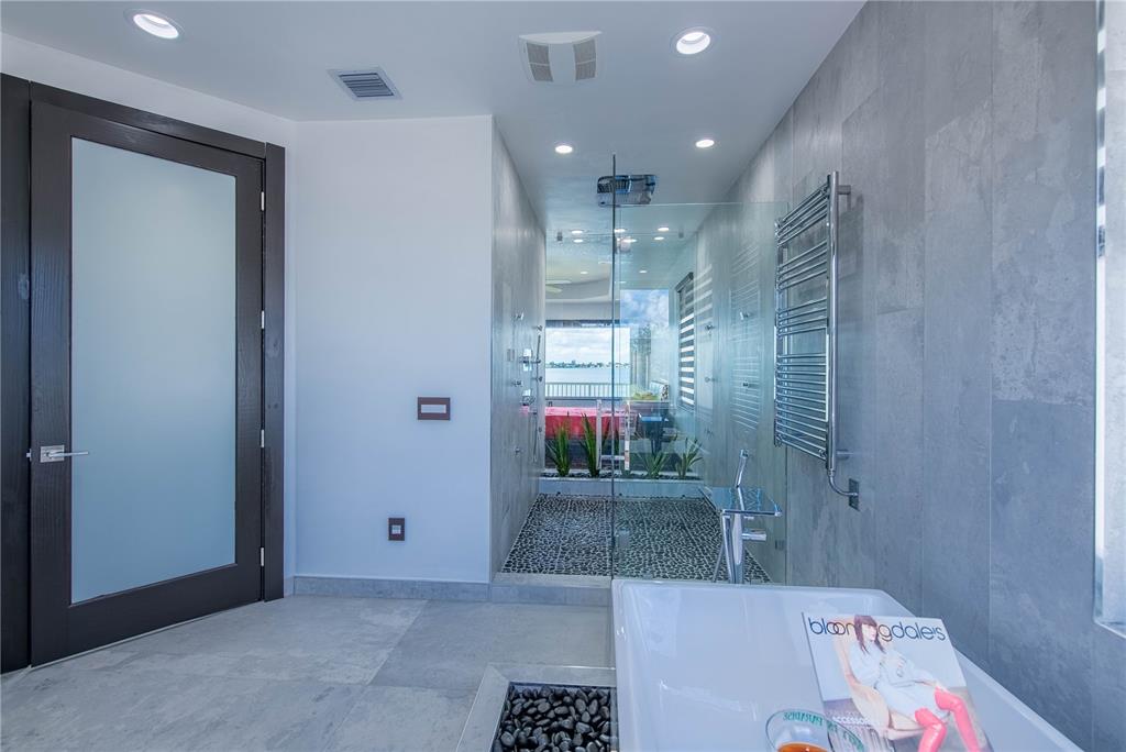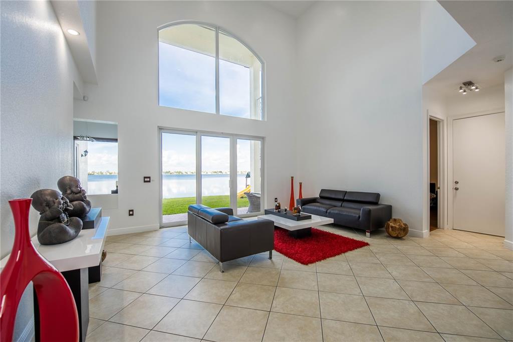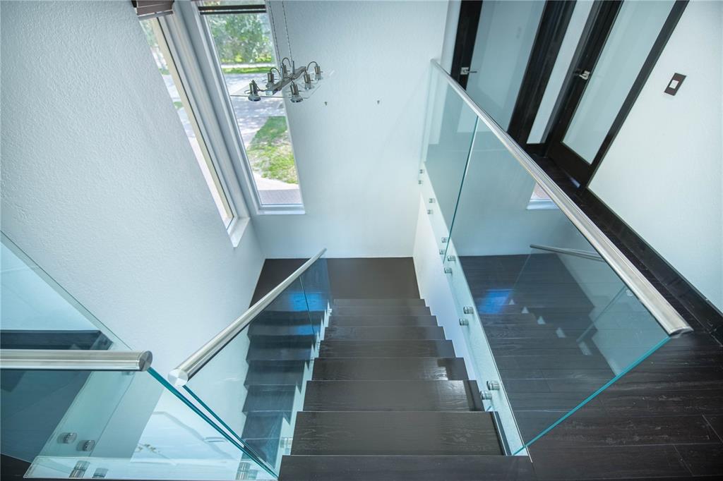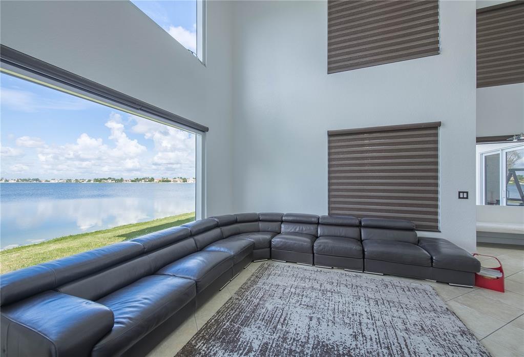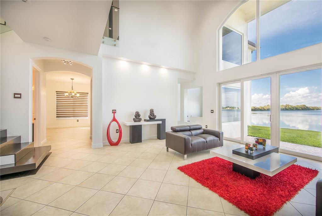 Stunning remodeled home with 5bed/4.5baths plus office. Impact glass windows, doors and electric modern window treatment throughout the entire home. Beautiful glass railing stairs and wood floors upstairs. The second floor has been completed remodeled,led lighting, new A/c unit and water heater,all the closets are costume made. Amazing lake view sunsets from every angle of the property!