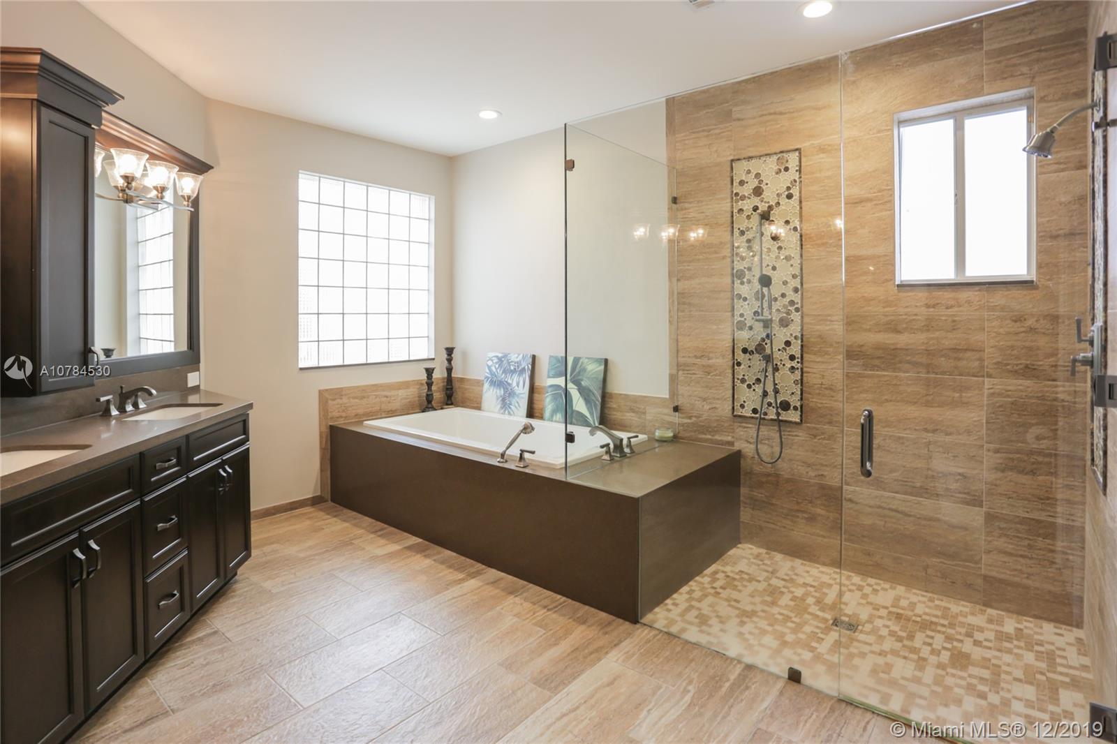 Timelessly Updated and Truly Stunning! This four bedroom one story home has been completely renovated with the finest finishes and attention to detail! Chef's kitchen features 42" wood cabinets, unique quartz counter tops, built-in Fisher and Paykel refrigerator, Smart convection wall oven and microwave, induction cooktop with custom hood & large center island which includes bar seating. The luxurious master bathroom boasts a spa-like tub and shower with wood cabinetry and quartz counters. Additional updates include top quality engineered wood flooring and baseboards, trendy light fixtures, silhouette window treatments and other designer touches! The covered patio opens to a fenced yard for your outdoor enjoyment. Accordion shutters. Community play area. Guard gate. Move-in Ready!
