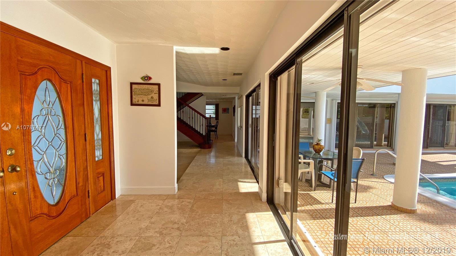 Best priced, two stories waterfront home located in the gated community of Eastern Shores. Three bedrooms, two baths upstairs, and one bedroom one bath on the ground level; large home with 3,227 SF offer 80 Ft of water frontage, with no fixed bridges to the ocean. Travertine floors throughout the living areas, & hardwood floors in the bedrooms upstairs. Kitchen with stainless steel appliances, and granite countertops. U shape floor plan with covered patio area overlooking the pool perfect for entertaining family and friends. The roof was replaced in 2019, a brand-new driveway with plenty of parking for multiple vehicles, double garage. Longtime owner is ready to move, prime location property ready for a complete renovation to build your waterfront dream home. Walking distance to the beach.