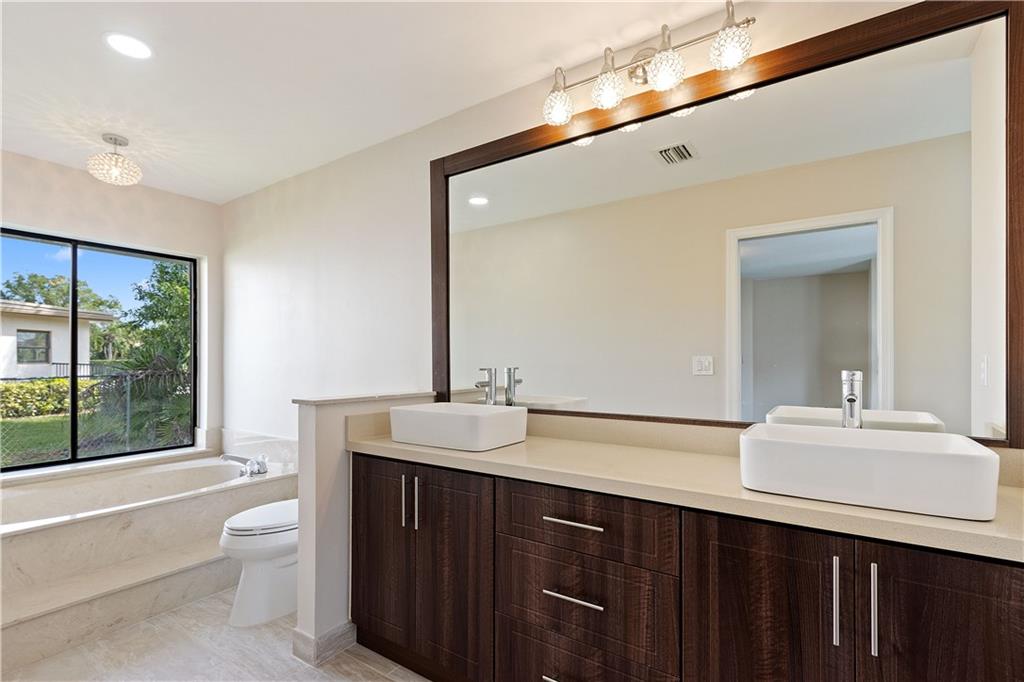 Gorgeous home has been completely remodeled. Brand new kitchen cabinets with quartz countertops. New stove. New bathroom cabinets and countertops, new showers. Freshly painted inside and out. New pool equipment. Roof from 2002 in good condition.
