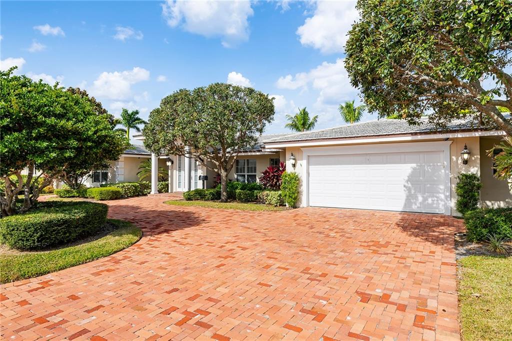 Transitional home in The Landings with deep water dockage suitable for up to a 43 ft. vessel. The single-level home surrounds a marble paver patio with refurbished pool and spill-over waterfall spa, taking full scenic advantage of 53 ft. of waterfront with views looking down the length of the Bayview Inlet. Open gourmet kitchen with gas cooking, Sub-Zero and Wolf appliances, stand-alone island, wine cooler, solid wood cabinets and granite counters. Four bedrooms, plus an office. Large master suite with walk-in closet and sliding door access to the patio / pool. The marble-finished en-suite bathroom has dual sinks, glass shower and Kohler soaking tub. Rebuilt in 2004 by the award winning Marker Construction Group, this home includes a myriad of amenities including impact windows and doors.