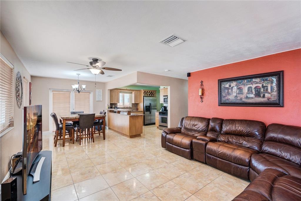 Beautiful 3/1 Single Story House located in highly sought after area with EZ access to major highways, Shopping, Hospitals, and Parks. The interior is updated to include a newer A/C unit, gas water heater. Updated Kitchen with new counter tops and new cabinets. Updated Bathroom. New Appliances. All windows impact resistant. NO HOA Dues! Enormous back yard, completely fenced with fruit trees. This home is in the perfect location, that is warm and welcoming.