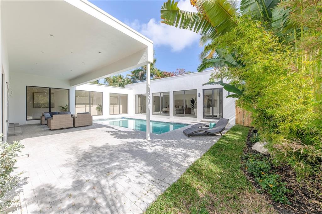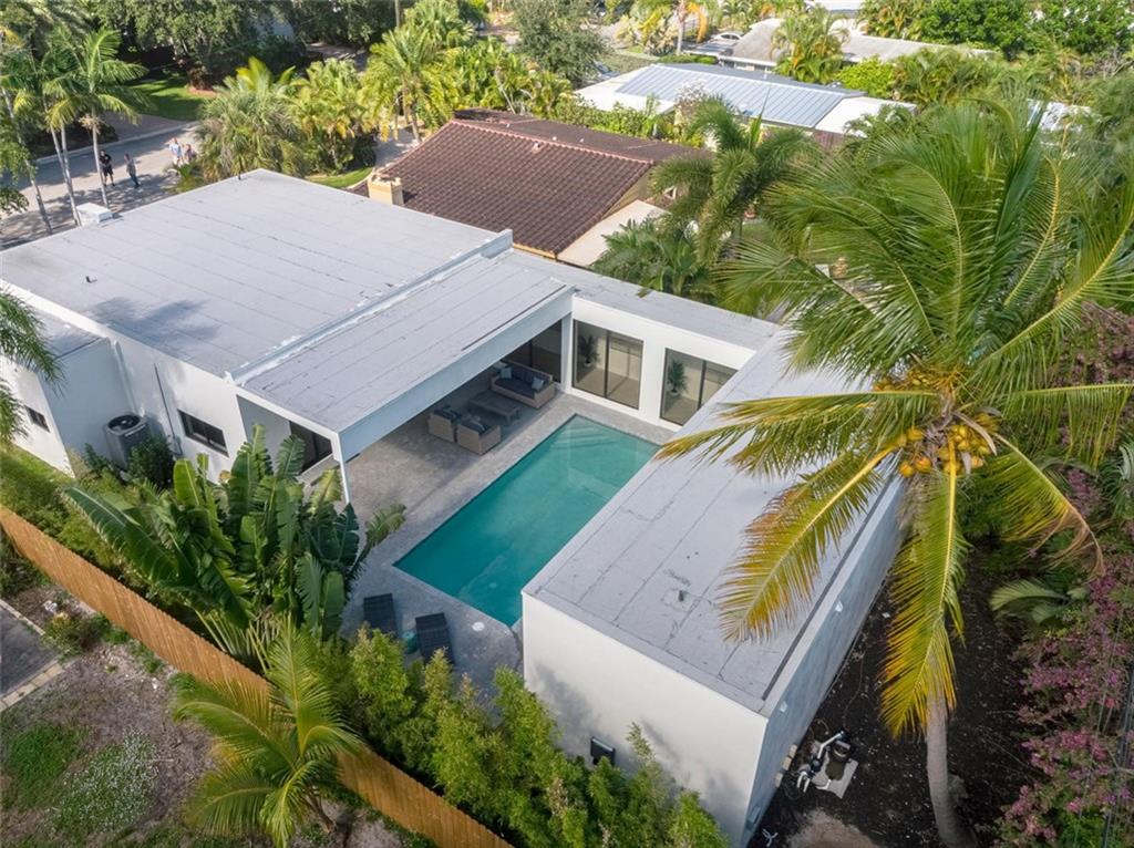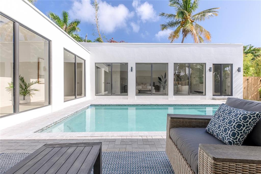 Newly completed high tech and high style on an existing foundation. Rebuilt and expanded into a very cool courtyard style home in sought-after Poinsettia Heights. With walls of glass, this very modern 3/3 home has a new quartz kitchen with a state of the art platinum package appliances including a smart-fridge with built-in information center, under cabinet windows and a huge center island. Each bedroom has a large closet and direct bath access. All rooms have recessed lighting. The open master suite has a free standing soaking tub, separate shower and dual vanity as well as a water closet. Two zones of a/c keep the climate comfortable and may be operated remotely. Outdoors an ample sundeck surrounds the pool with a large portion under roof for relaxed lounging and dining.