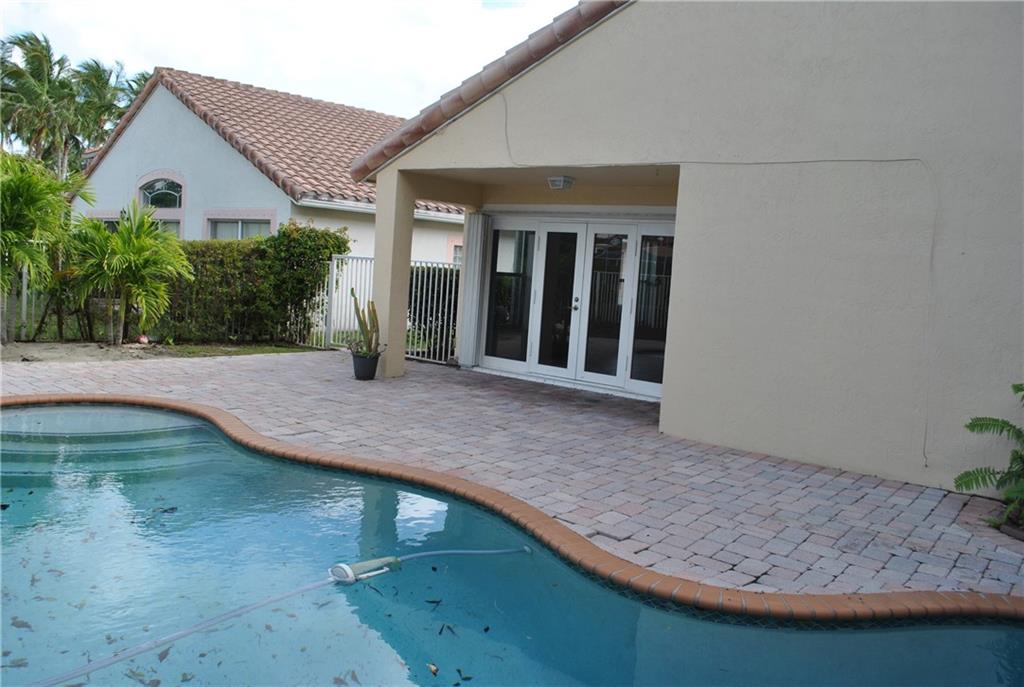 This single-story home has soaring ceilings and a wonderful open floor plan located in a highly desirable area of Coral Springs. Upgrades include a heated saltwater pool, fenced yard, accordion hurricane shutters, and an updated kitchen with granite countertops and new appliances, renovated master bath, 12x12 tiles and Pergo wood flooring, and new landscaping. The gated community has low HOA fees and is in an A+ school district.