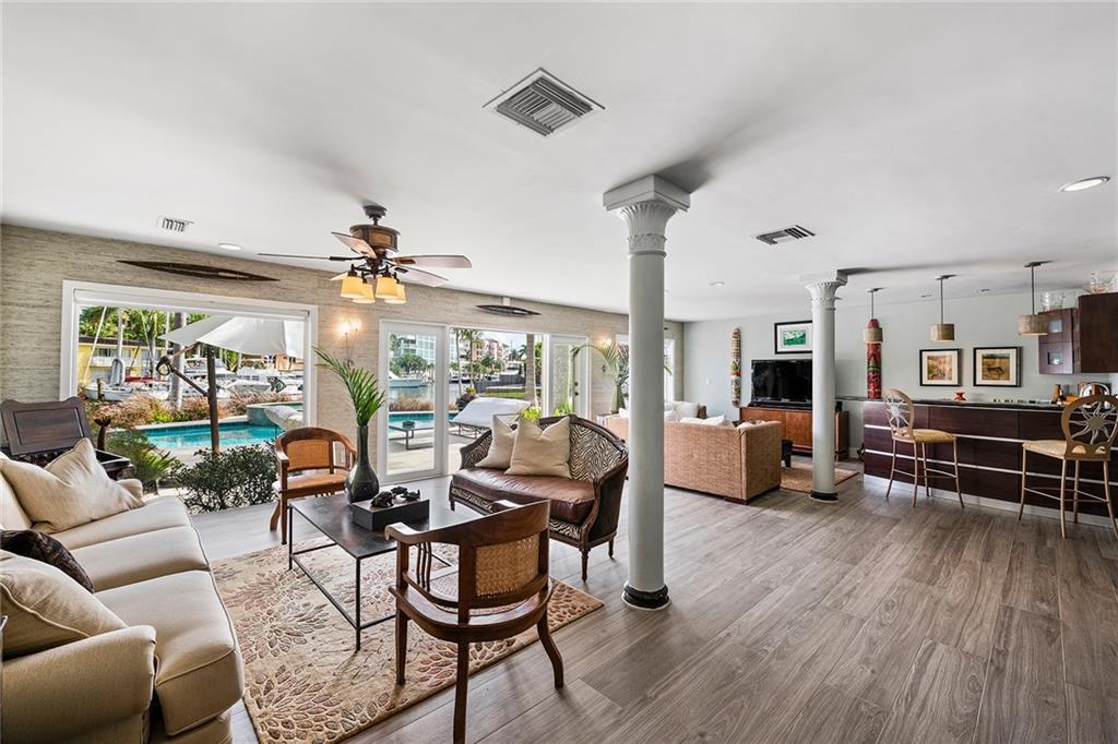 "Villa Palmas" is a secluded, tropical paradise estate home situated on an 18,607 SF point lot in the enviable exclusive island enclave of 30 waterfront homes just steps from Downtown Fort Lauderdale and the fashionable Las Olas shopping and entertainment district. Enjoy resort living at it's finest in this one story 4 BR/4.5BA open floor plan home - truly designed for entertaining!! With 2 master suites, gracious living areas, vaulted ceilings, chef's kitchen, fireplace and an amazing heated pool and patio area which has two docks w/270 total linear feet. Extensively upgraded in 2017 with new flooring, kitchen w/Greenfield custom cabinetry and top of the line appliances, LED lighting throughout, whole house gas generator and 2 car garage. You must see this home!!