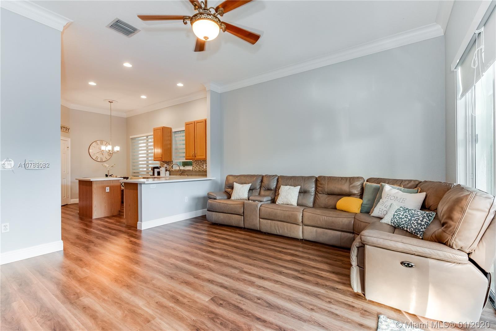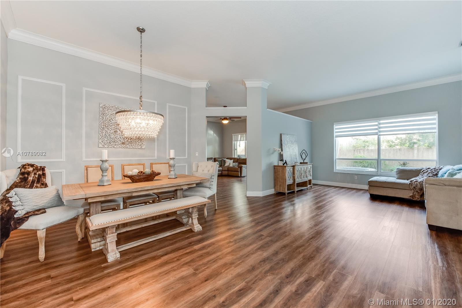 Contemporary NEWPORT MODEL POOL HOME in Sought After Pembroke Falls: Remodeled Eat-in Kitchen, Wood Cabinetry, Quartz Counter-Tops, Island, SS Appliances, Double Oven, Gas Range, Pantry, Spacious Master Suite, His & Hers Walk-In Closets, Dual Vanities, Roman Tub, Contemporary Paint, NEW Modern FLOORING, Volume Ceilings, Custom Millwork, Smart Home HD Camera System & Nest Thermostat, Zebra Shades & Black-out Blinds, Expansive Covered Travertine Patio, REFRESHING FREE-FORM POOL & SPA, Fenced Grounds, Natural Gas & Accordion Shutters. RESORT STYLE CLUB HOUSE: Heated Pool, Spa, Gym, Tennis, Basketball, Ballroom, Tot-Lots, Security, Activities Director & Onsite Management. HOA includes: HD Cable, Wireless Internet & Alarm. Convenient to Shopping, Dining, Entertainment & Schools.
