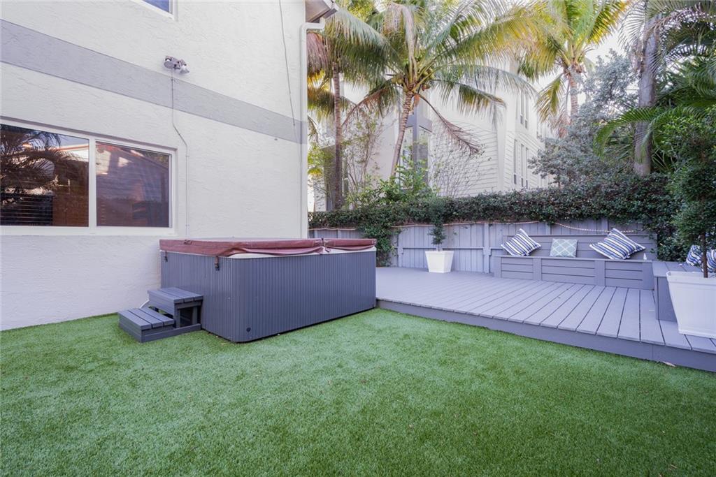 Gorgeously remodeled three bedroom, two and a half bath, corner unit townhouse in the heart of East Fort Lauderdale! This unit boasts a large open white kitchen and dining area that oversees a huge deck featured with a hot tub and recently installed artificial turf grass - perfect for entertaining! The master bedroom and bath along with two bedrooms and another bathroom are located on the second floor, while the half bathroom is perfectly located downstairs for your future guests. This 14 unit community is lined with lush landscaping and a large heated pool. One assigned parking spot per unit and guest parking is never an issue! Conveniently located in a great rated school district and very close to all major highways. If you are looking for a place to call home, this is it!