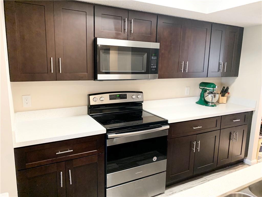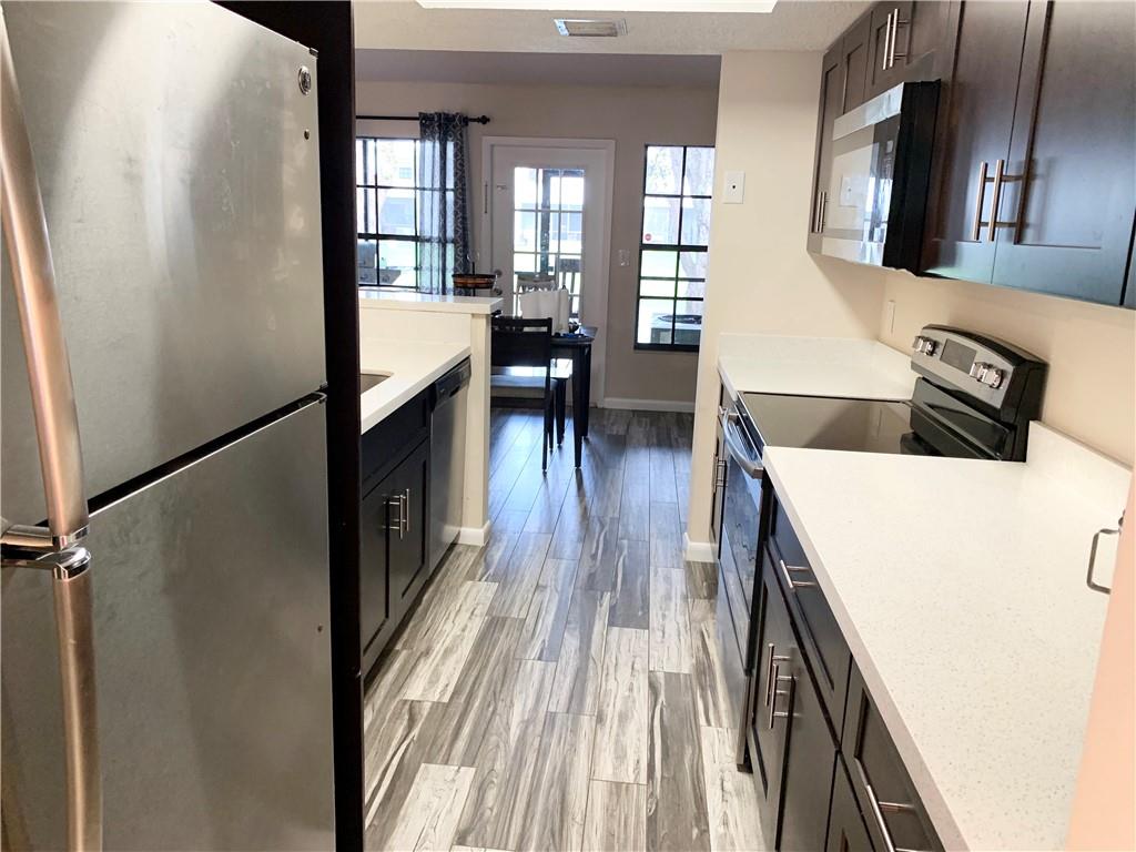 Walk into a Large Living room/dining room area.Breakfast/family room in the back over looking the water and Screened deck.Updated kitchen has Quartz counters and Stainless appliances.Wood look tile floor in kitchen.All the bedrooms are upstairs and have wood laminate floors.Master bedroom is spacious with lots of closet space. Bathrooms are updated. Full sized washer and dryer on first floor. Great location for schools,Parks and shopping. 2 pets allowed. Can be rented right away. No application or screening for purchaser. No trucks or commercial vehicles. Low maintenance fees Welleby master $36 paid Quarterly. Palm Isle $135 paid monthly