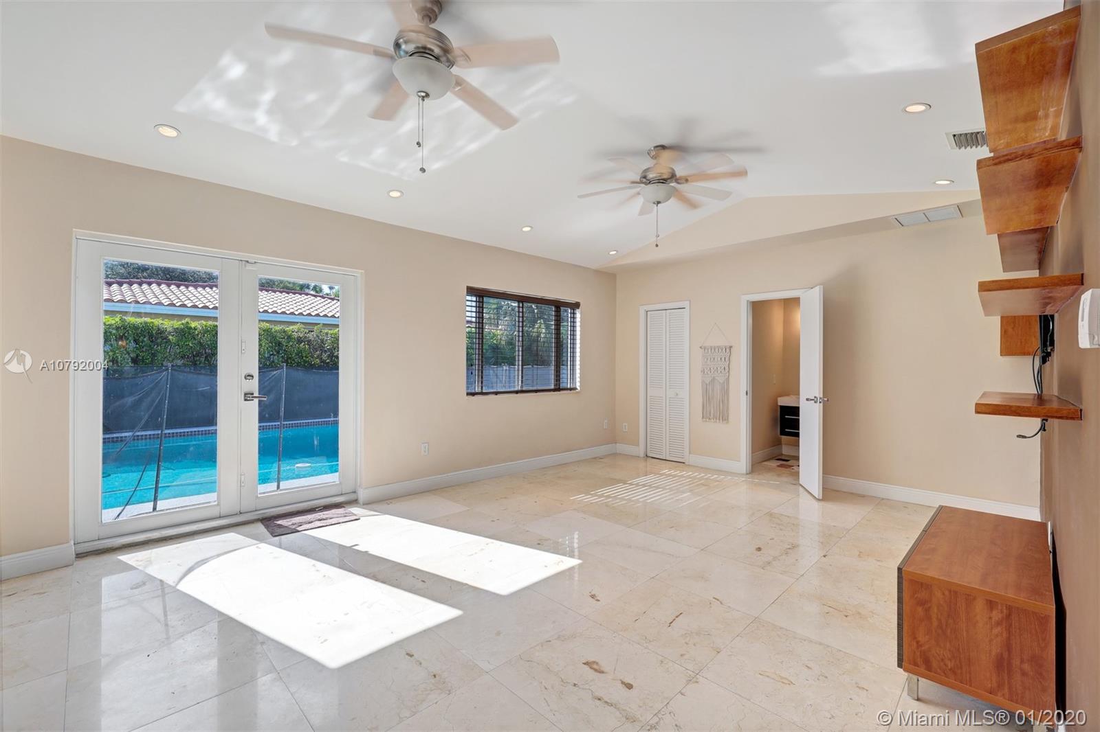 Charming Mid-Century home. This home features 3 bedrooms /3 baths and a floor plan that is fluid and functional for great entertainment. Enter to exposed wood beam vaulted ceilings in the living/dining room area. Beautiful upgraded kitchen with top of the line appliances. Marble floors, Bathrooms tastefully remodeled. Master bedroom is very spacious and it has " his and hers walk-in closet". Family room with adjacent bar area. Beautiful pool to enjoy Florida living where fun and sun go hand in hand! Mostly impact windows and doors, some hurricane shutters. 2 car garage, Large pantry. Close to University of Miami, Restaurants, Hospitals and shopping centers. As per appraisal living space is 2292 sq.ft.