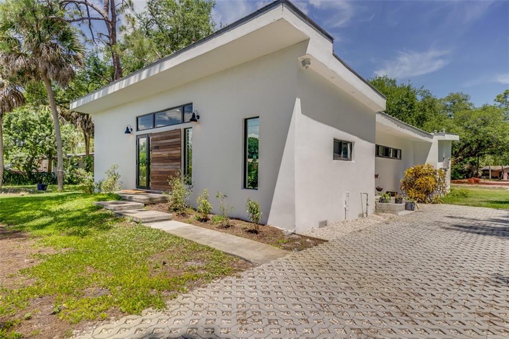 PROPERTY OCCUPIED. Unique 3 bedroom 2 bathroom new construction house. Certified energy efficient by FPL. optimized for Florida outdoor living, 600 sq ft concrete courtyard. Gas stove and hot water tank. Smart home features. Metal roof. Too many features to list. Open floor plan. High ceilings. Surrounded by mature trees.