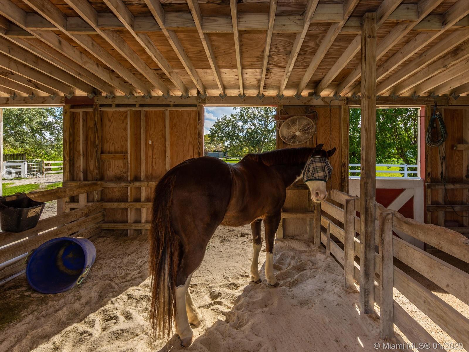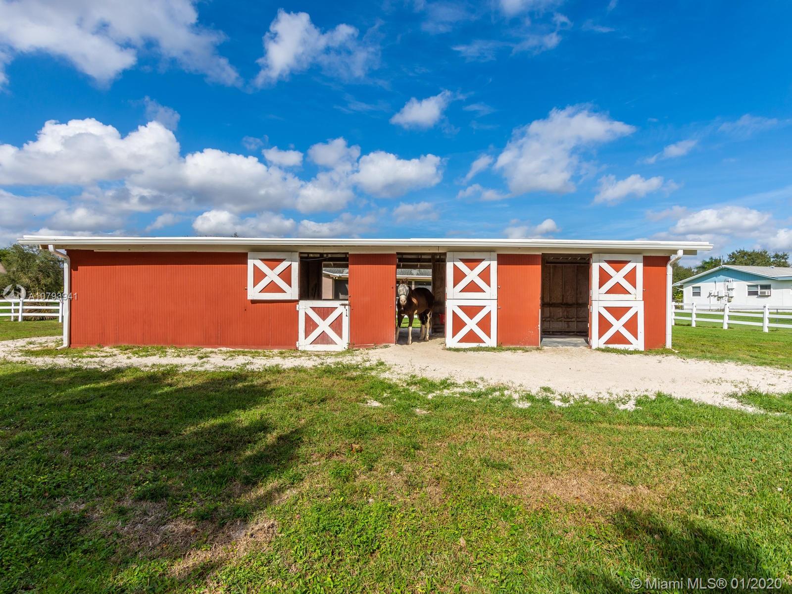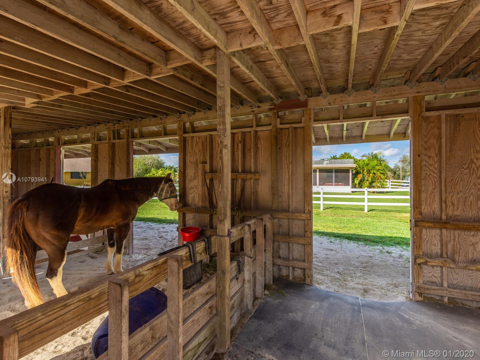 This is it! No HOA! Bring your Horses, RV's, Boat!! This ranch home is sitting on a builders acre, on a cul de sac! There is a 3 stall barn with a tack room! White PVC fencing The kitchen is remodeled with wood cabinets, marble counter tops and LED lighting. The roof was installed in 2009. Brand new waterproof wood vinyl flooring thru-out entire home. Matching mahogany doors with leaded glass on front and beveled glass on French doors. Both bathrooms have been remodeled. The master has a huge walk in shower! Fully functional brick fireplace! Accordian hurricane shutters, Portable generator rated at 15,000 watts. Capable of servicing entire house including A/C.