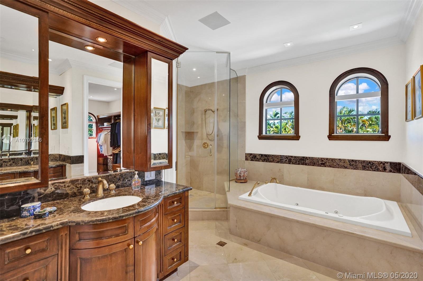 Welcome to your picture-perfect Mediterranean villa! A true boater’s paradise with a seawall, dock, and access to Biscayne Bay. Built in 2001, this move-in ready, gated home is elegantly appointed offering lush landscaping and a functional floor plan. Designed for entertaining with 2 large covered terraces, built-in grill, and a pool. The living room, kitchen and family room all open to the outdoors. A 1/1 ground floor guest suite overlooks the front garden while the 2nd ground floor 1/1 guest suite has its own private entrance. The upstairs grand master suite enjoys a large terrace with a spiral staircase to the pool, a glamorous master bath, and a spacious walk-in closet. Two additional upstairs bedrooms share a Jack/Jill bath. Live in one of Coral Gable's most prestigious neighborhoods!