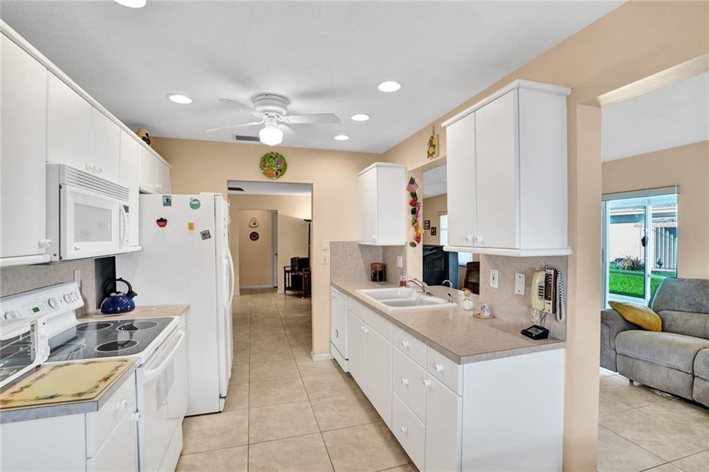 Perfect quiet neighborhood with an even more comfortable & spacious home. Protected with accordian shutters and storm awnings. Owners can enjoy relaxing on either the front porch or rear screened patio. The clubhouse boast a library, entertainment, card room, billiards, fitness centers, heated pools, tennis courts, locker rooms & more. In addition, courtesy shuttle system is in place.