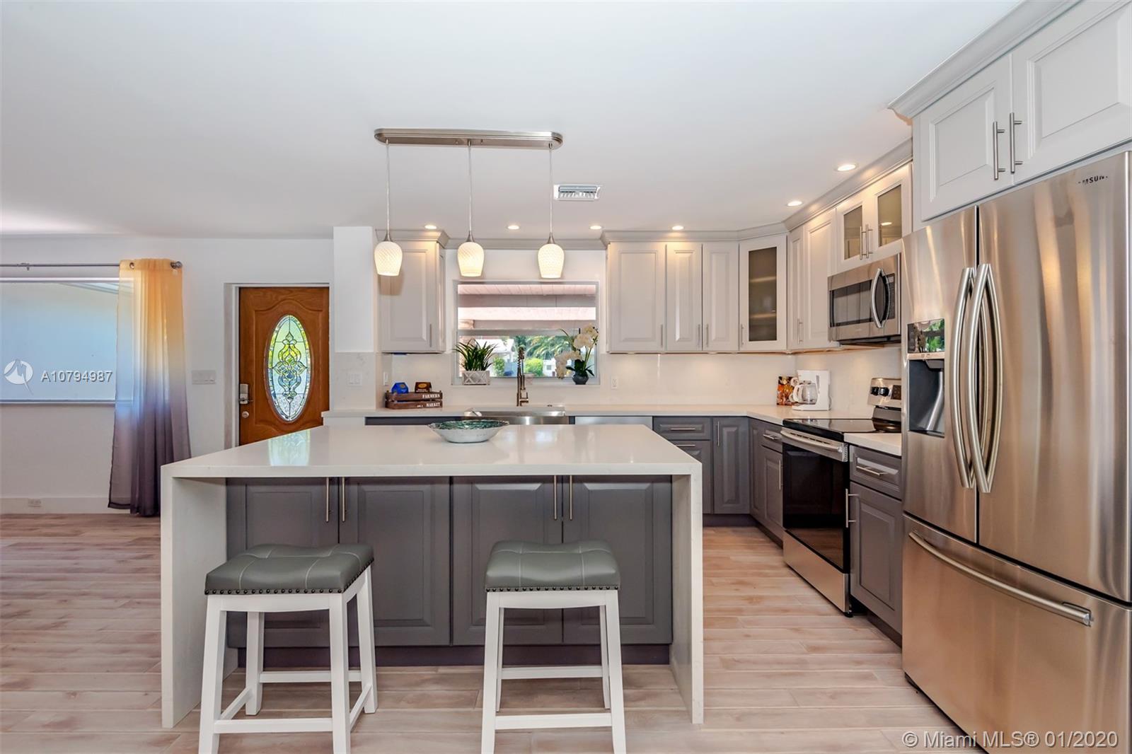 Perfect property for a second home or vacation rental for investors. Excellent short-term rental income property. Beautifully renovated waterfront 3 bedrooms 2 full bath pool home on a wide canal with 60' frontage. Private pool area, private 50" dock. Open living area. Brand new designer gourmet kitchen with huge waterfall island and stainless steel Samsung appliances. Two new A/C's were installed in December 2018. Deepwater, OCEAN ACCESS WITH NO FIXED BRIDGES just a few minutes from Intercoastal! East of US-1. House is located in a quiet neighborhood, near the beach & shopping. HOME IS VACANT, CAN BE SHOWN ANYTIME, ON LOCKBOX. See the video: http://cdn-mls.s3.amazonaws.com/miami/MIAMI_A10794987/clip.mp4