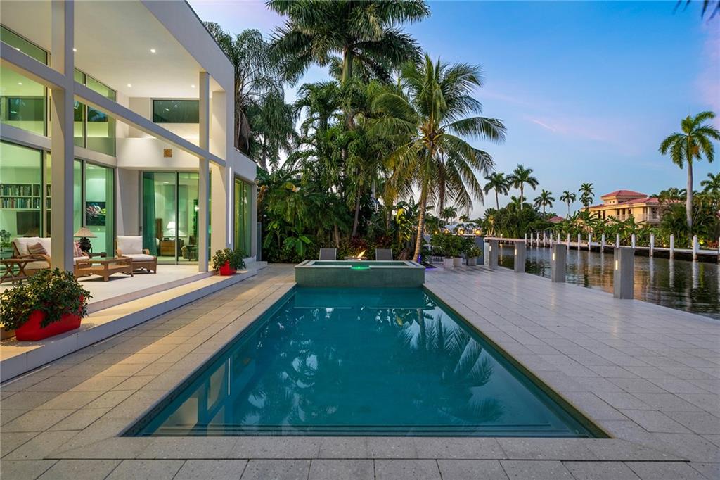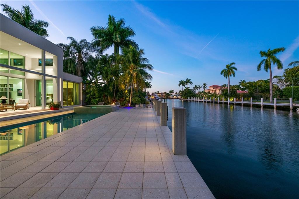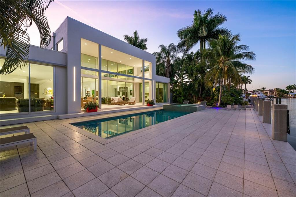 Prepare to live a life of sophisticated luxury surrounded by revolutionary architecture inspired by an ultra-modern design. This deep waterfront estate is ideal for boating boasting a concrete dock, wide canal & no fixed bridges to the Intracoastal & Ocean. The luminous open floor plan, soaring ceilings & walls of glass are conducive to today's lifestyle. The custom culinary kitchen features a large center island, upgraded appliances, gas cooktop, 78 bottle wine cooler & tremendous storage. Multiple stacking doorways integrate indoor & outdoor living spaces that overlook the heated pool, spa & tropical waterway. Additional details included: 2 tankless gas water heaters, whole house water filter, Creston & sound systems, motorized window treatments, back-up generator. Sq Ft from IMAPP.