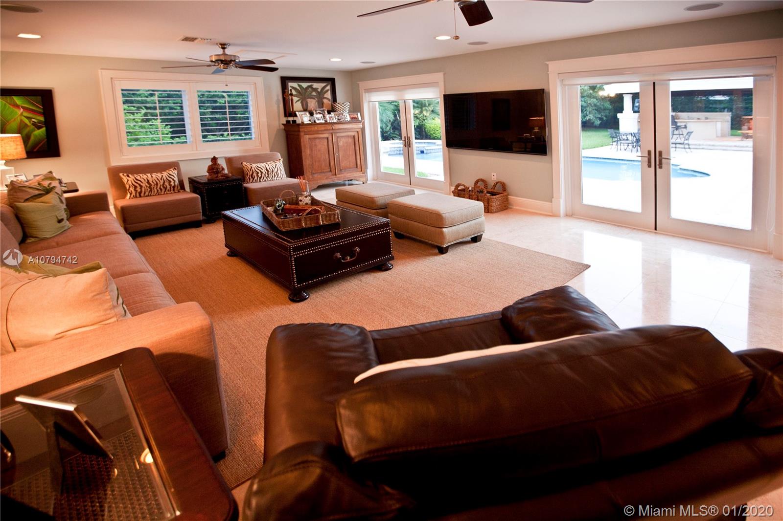 Immaculate and beautifully appointed half-acre home in Pinecrest. This lovely 4 bedroom 3 baths home offers 3723 sqft. of resort like living. The large kitchen is a chef's dream; two islands with top-quality cabinetry, high end appliances and finishes. Huge Master bedroom with its own sitting room overlooking the sparkling blue pool, Jacuzzi and gazebo. This home was fully renovated and updated with impact windows and doors. Beautiful marble floors throughout and hardwood cabinetry in all bathrooms.