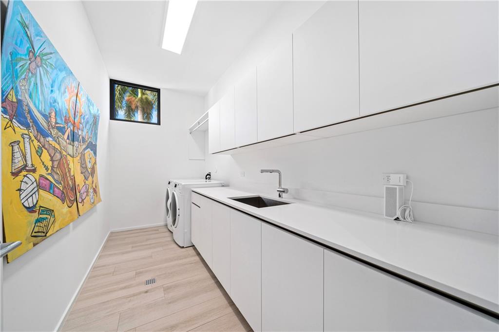 This beautiful new modern estate is located on Sunset Lake w/wide water views & easy ocean access! New seawall & concrete dock for the avid boater. Open floor plan with features that include wet bar w/ fridge & wine cooler, home theater, kitchen with top of the line appliances, gorgeous cabinetry and extra back kitchen. Light and bright with floor to ceiling windows. A floating glass staircase w/ European oak steps leads upstairs to the ensuite guest suites and a large master suite with private balcony, dual walk in closets & water closets and morning bar. Outdoor living space with pool, BBQ & fire table. Home is equipped with natural gas, backup generator, custom landscape lighting, 2 laundry rooms + central vacuum system. 3-car garage w/ room for lifts for possible 6 garage spaces.