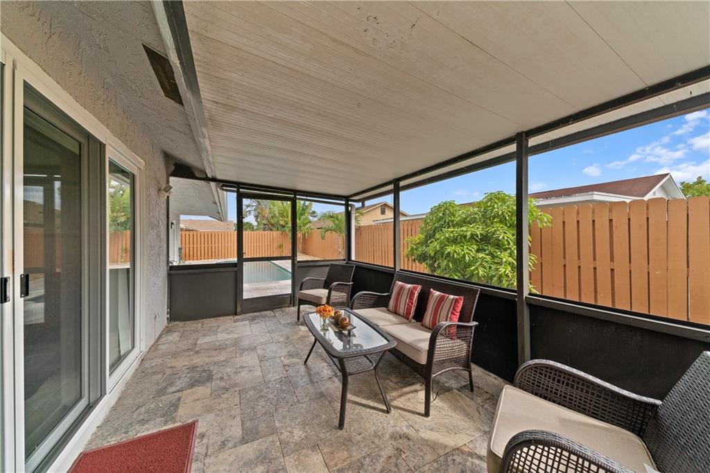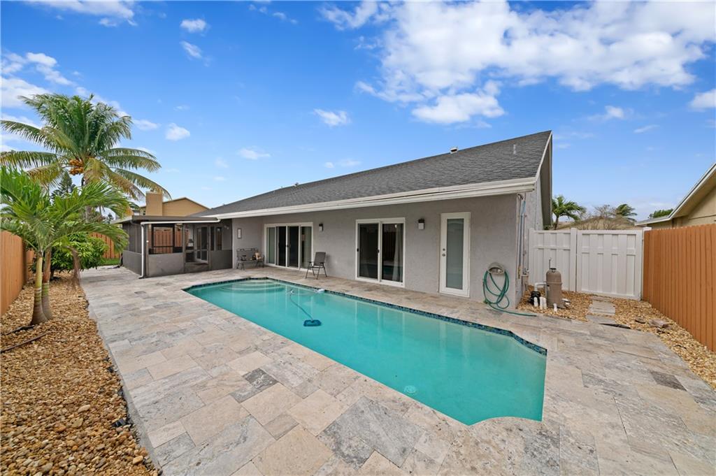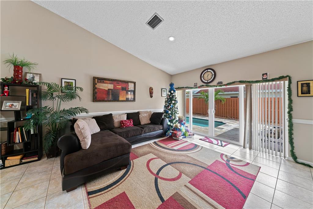 Hurry this one will go fast!! Very rare find. Gorgeous 3bdrms/2 baths/2 car garage pool home. Beautifully upgraded kitchen w/Quartz counter tops. Backyard looks impressive with new rocks all around the travertine pool deck. Other upgrades include newer guest bath, upgraded master bath, 3D shingle roof, laminate & tile floors, pool pump, water heater & SS refrigerator. Home has hurricane impact sliding doors that lead to the screened patio & private fenced yard which is perfect for entertaining and making special memories. Most of the windows are hurricane impact except for 3. The home has vaulted ceilings & a conversation pit. Mins away from all highways, Sawgrass Mills Mall, airport & beaches. Features include eat-in kitchen, big family room, large screened-in patio & walk in closet.