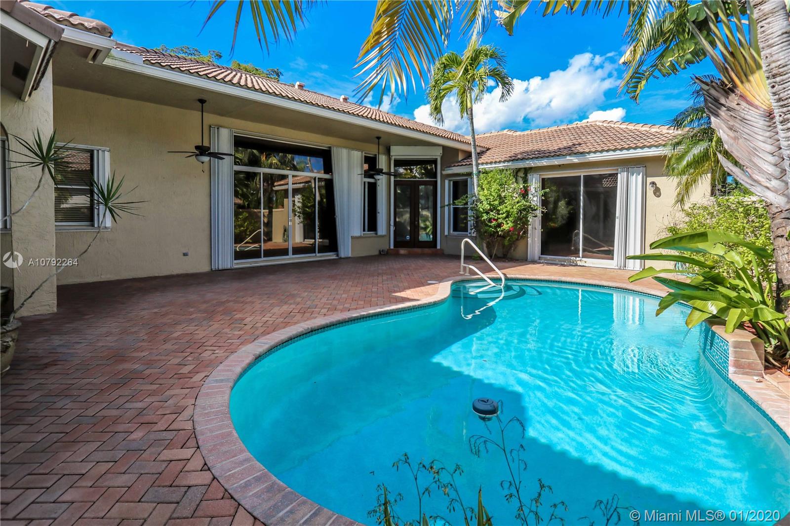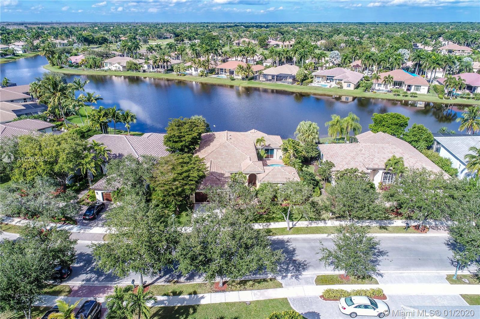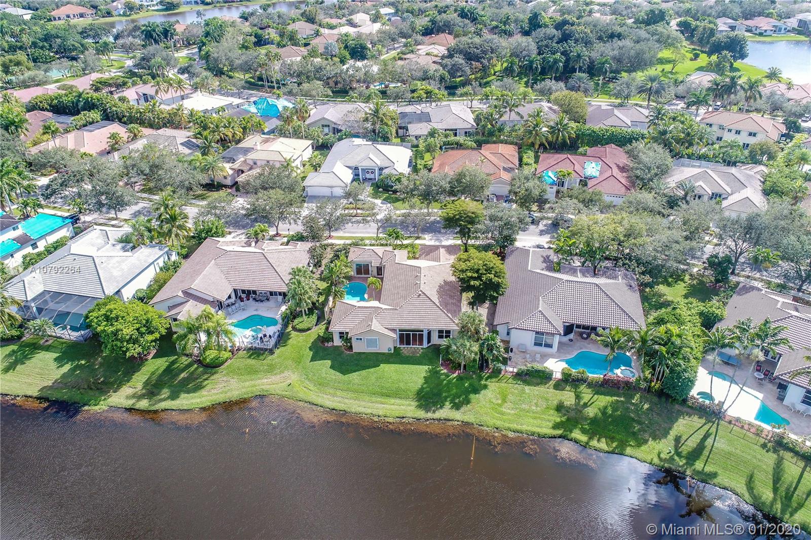 Located in the exclusive Weston Hills Golf & Country Club subdivision, this property evokes a Mediterranean-style architecture with an internal courtyard which includes a swimming pool. The home features a MAIN HOUSE with 3 bedrooms, 2 bathrooms and spacious open-space living areas as well as a separate GUEST HOUSE with 1 bedroom and 1 bathroom, (perfect for guests, Home office or a studio). You can enjoy the peaceful and wonderful lake views, the privacy and safety of the courtyard pool provide, and the magical Florida Sunsets. The high volume ceilings and the spacious floor plan allow tremendous potential for re-design and upgrades. Roof replaced in 2015, 2 A/C Units changed 2014 and 2016. A+ Schools in one of the safest cities in the State. Good Investment Opportunity! Must be seen!!