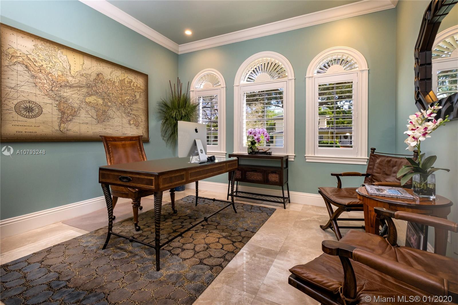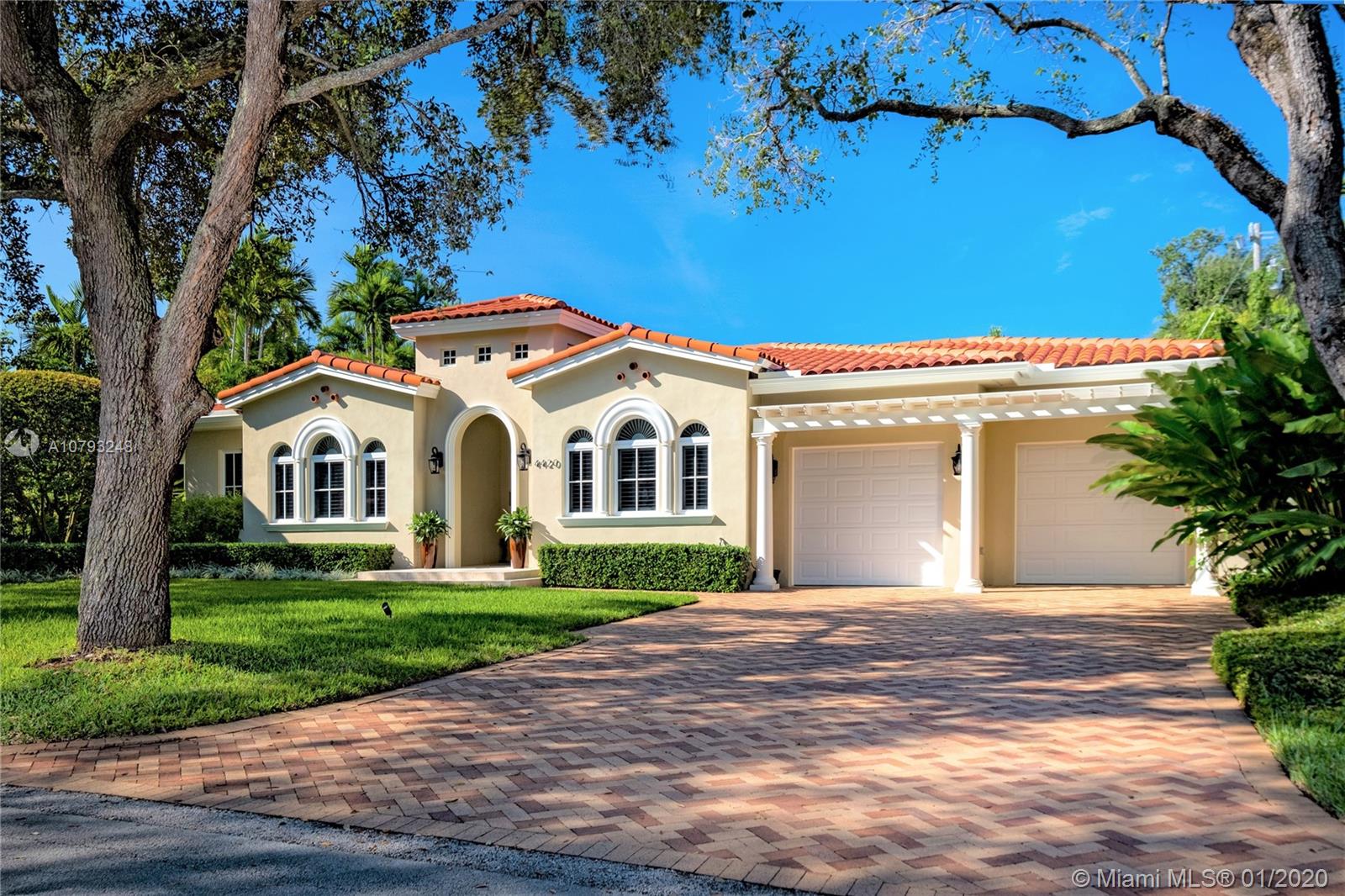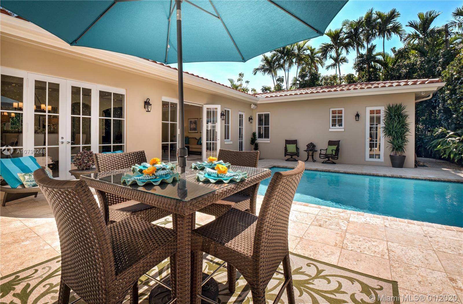 Executive living meets tropical haven! Move-in ready, single-story residence on coveted Coral Gables street features 4bd, 4ba, 3,505 total SF, newer construction (2010) & luxurious yet functional smart living spaces. Spacious interior design, soaring ceilings & 24x24 polished travertine floors create a bright floorplan that flows from one room to the next, all opening up to the tranquil courtyard pool. Mature landscaping provides complete privacy. Gas chef's kitchen offers high-end appliances & plenty of storage, perfect for those that love to cook/entertain. The sumptuous master suite boasts his/her walk-in closets & spa-like bath that presents a serene place to retire from your busy day. Full impact windows & doors! Minutes from Shops at Merrick Park, Biltmore, UM & Riviera Country Club.