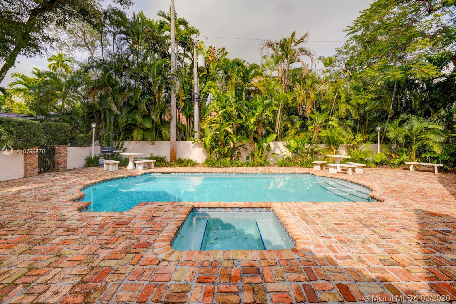 Fall in love with this spectacular Gables 3161 sqft pool home situated on a rarely available prime 24,990k sqft walled-in corner lot located in the gorgeous, desirable and historic Coral Gables. Walking distance to Venetian Pool, Miracle Mile, Biltmore Hotel, Granada Golf Course, fine dining, and Downtown Gables. Gated Spanish-Mediterranean design 4/3 baths with a great floor plan, car port, new roof, pool, jacuzzi and lush landscaping throughout. This house is built for upscale family style living and entertaining. Truly a one of a kind and charming home. A timeless classic!