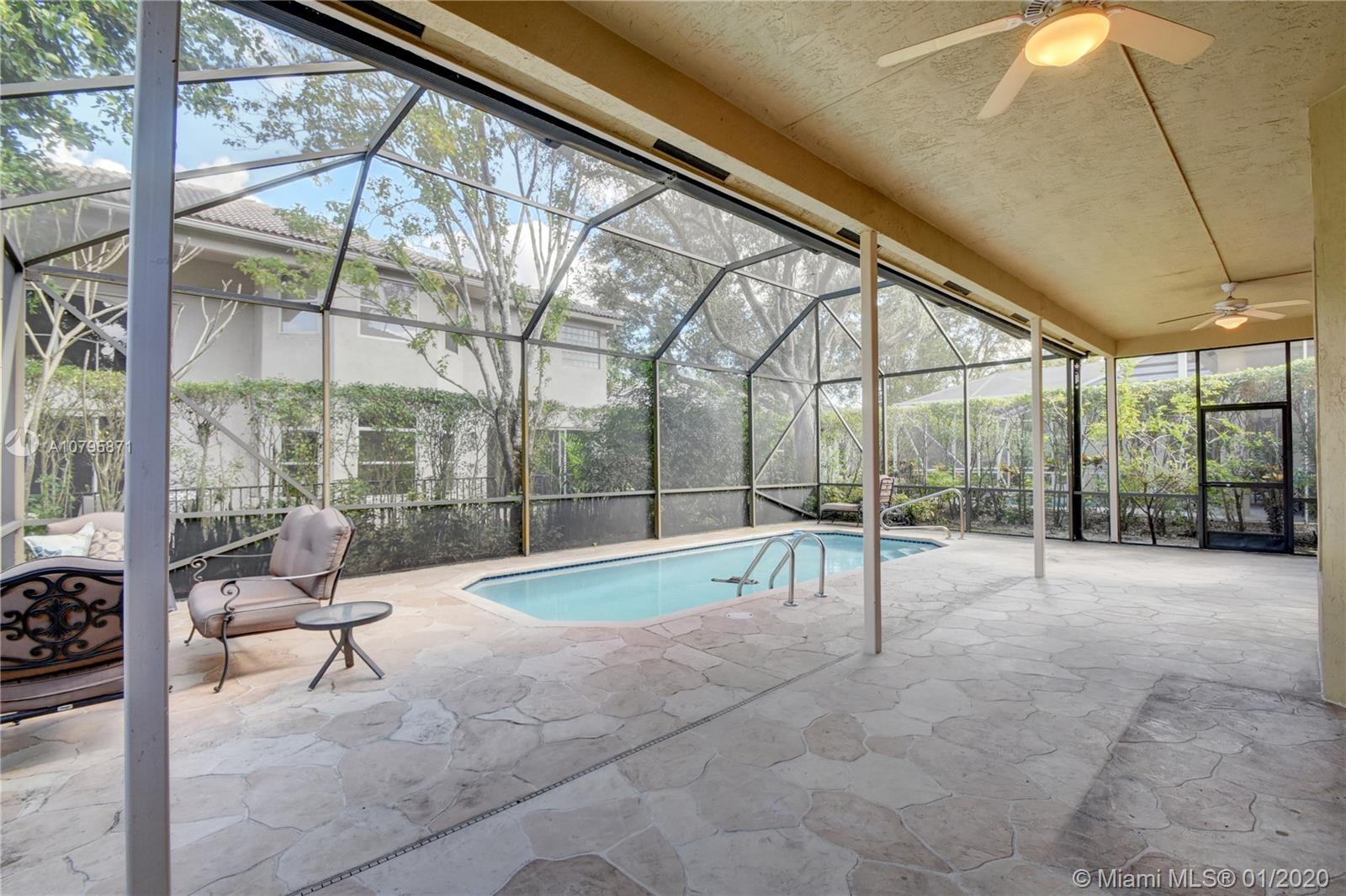 Newly renovated 5/3.5 in Boca Raton. Brand new, never-used kitchen with granite countertops and stainless steel appliances. Brand new extra-large, diagonally laid, porcelain tiling throughout first floor including kitchen, family room, dining room, and living room. Very large master bedroom upstairs with large master bath and roman tub. Large guest suite with private bath and entry/exit to patio on first floor. Very large screened in patio with private swimming pool. Close to all shopping as well as I95, FL-Tpk, and Sawgrass. Fantastic schools, quiet gated community with large public pool area, and newly renovated home, ready to greet new owners.