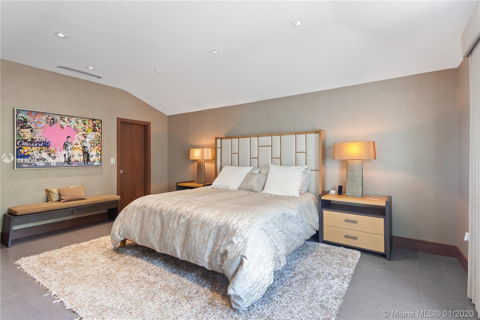 Fully remodeled 2-story gated home with detached guest house situated on a double lot on prestigious North Bay Road in Miami Beach. Smart home with Savant system, Lutron lighting, hurricane-impact windows & whole-home generator. Main House features 5 bedrooms, 4.5 bathrooms, custom Henrybuilt eat-in kitchen with chef's island & Miele appliances, formal living room with cathedral-beamed wood ceilings, formal dining room, theater, executive office & spacious master suite with terrace & spa-like bathroom with Jacuzzi tub & glass shower. Guest House offers 2 bedrooms, bathroom & kitchenette. Expansive backyard with manicured green space, covered patios, summer kitchen, dining & swimming pool with electric convertible cover. Private lush mini park for kids and/or pets & 2-car attached garage.