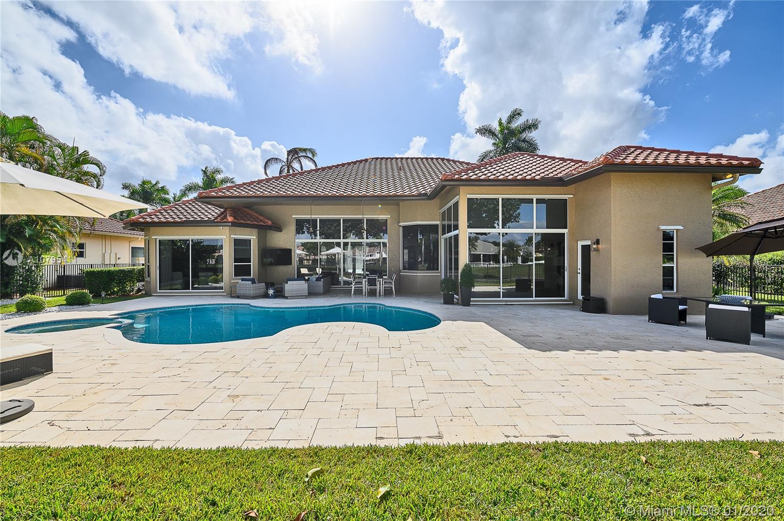 A FULLY REMODELED HOUSE from roof to floors, located on the 15th fairway of the tour course with breathtaking views of golf & water. Great home that’s open and bright, with volume ceilings, freshly painted with neutral modern colors, new marble flooring in main areas and wood flooring in the bedrooms, new roof and lavish landscaping. The family room and open kitchen will be an area you won’t want to leave while you enjoy the view of the gorgeous renovated pool area and the grand views of the golf course and its lakes, triple split layout with an expansive master suite and bath, oversize bedrooms, custom closets, ultra modern upgraded bathrooms are just some of the many long list of upgrades and features this house have to offer. This is a MASTER PIECE you don't want to miss!!!
