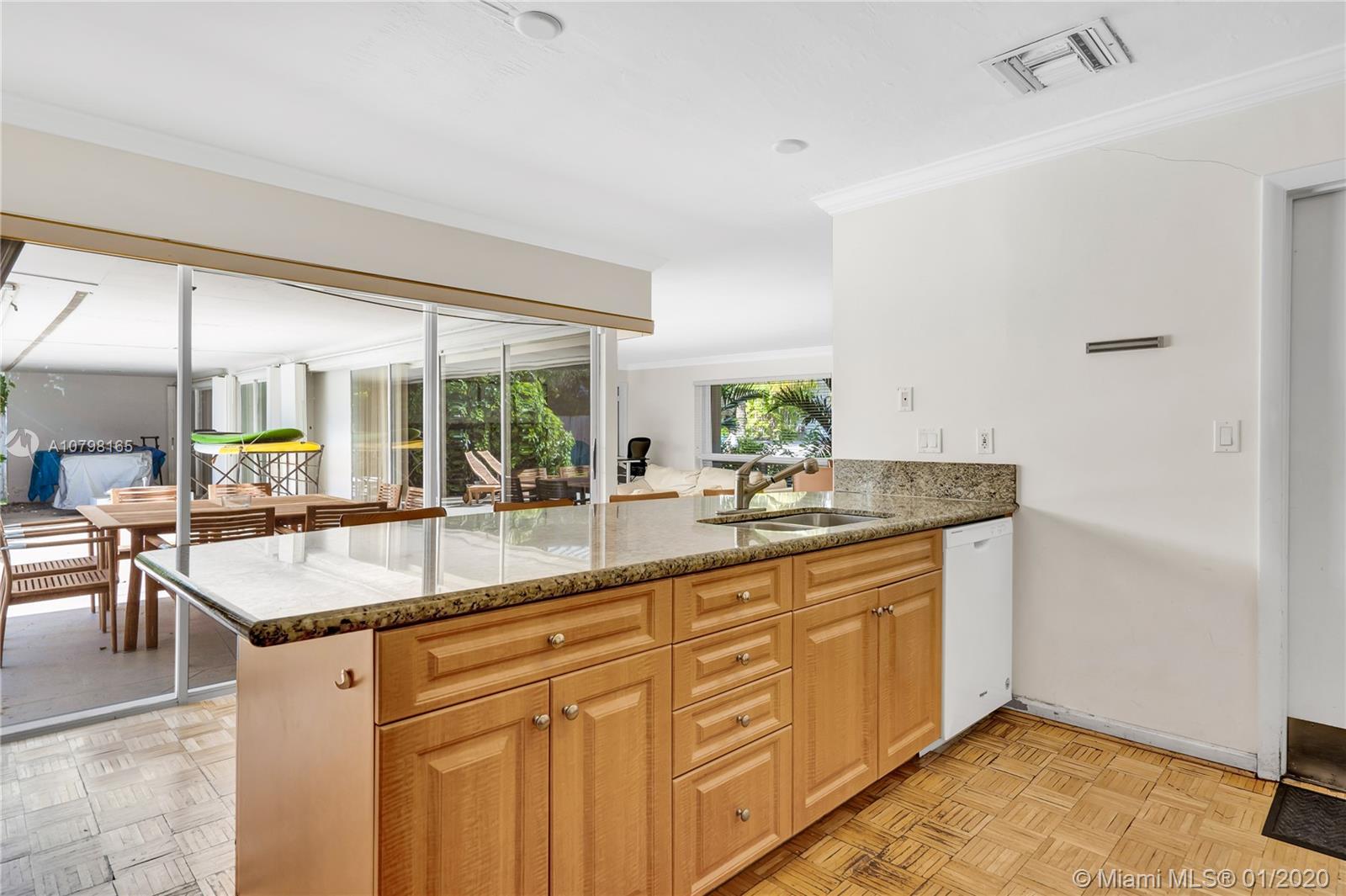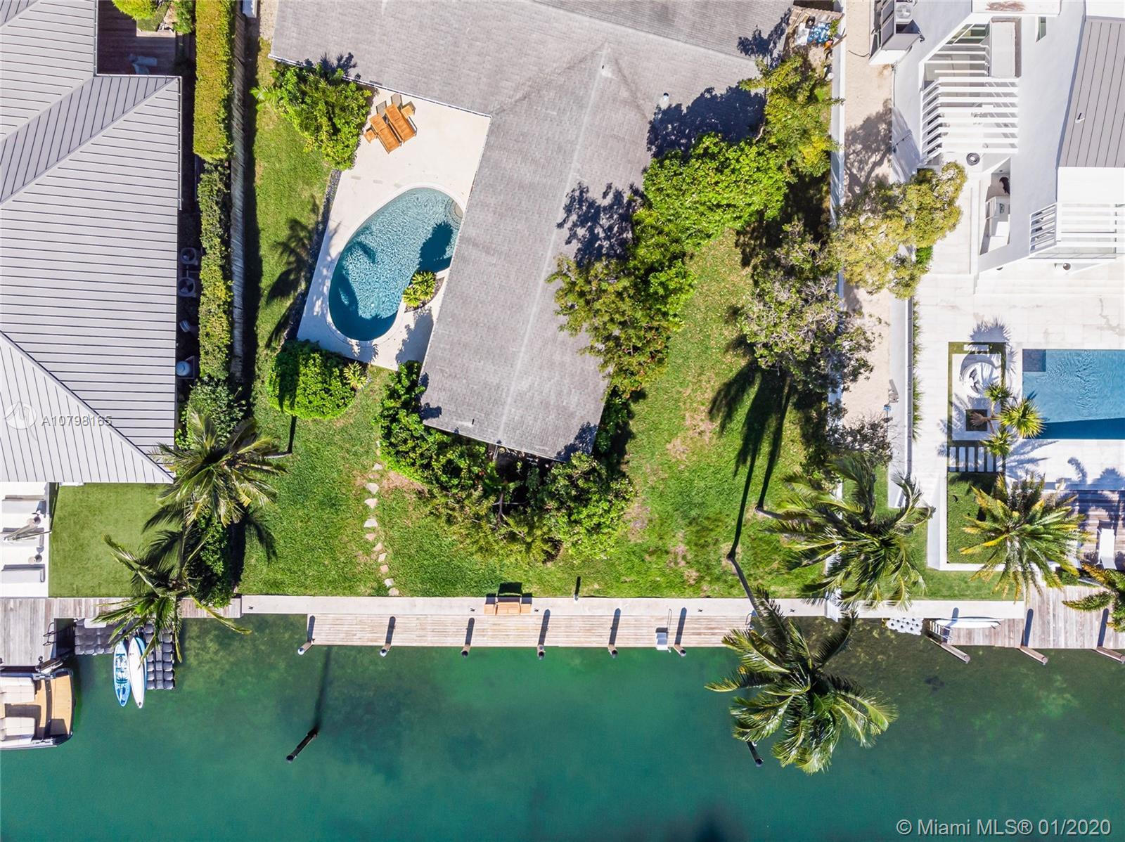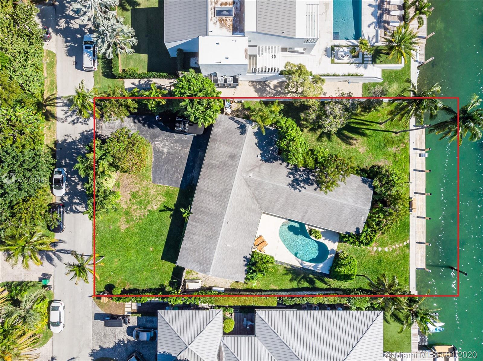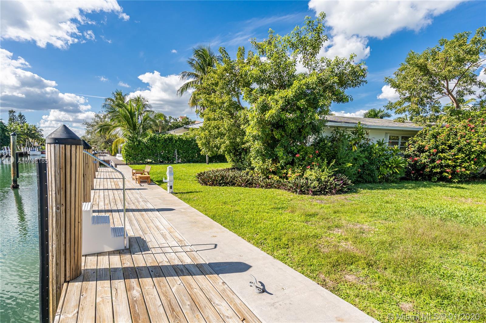 Lowest priced for a 15,000 SF Waterfront lot in Key Biscayne! Over 100 feet of water frontage with highly desirable South exposure and easy access to open Ocean. Build your dream home or remodel the current existing 3BR/3BA/3,541 SF home. Lot features new Dock and sea wall, and lot size is 100 x 150. Plans and permit available for a new contemporary home.