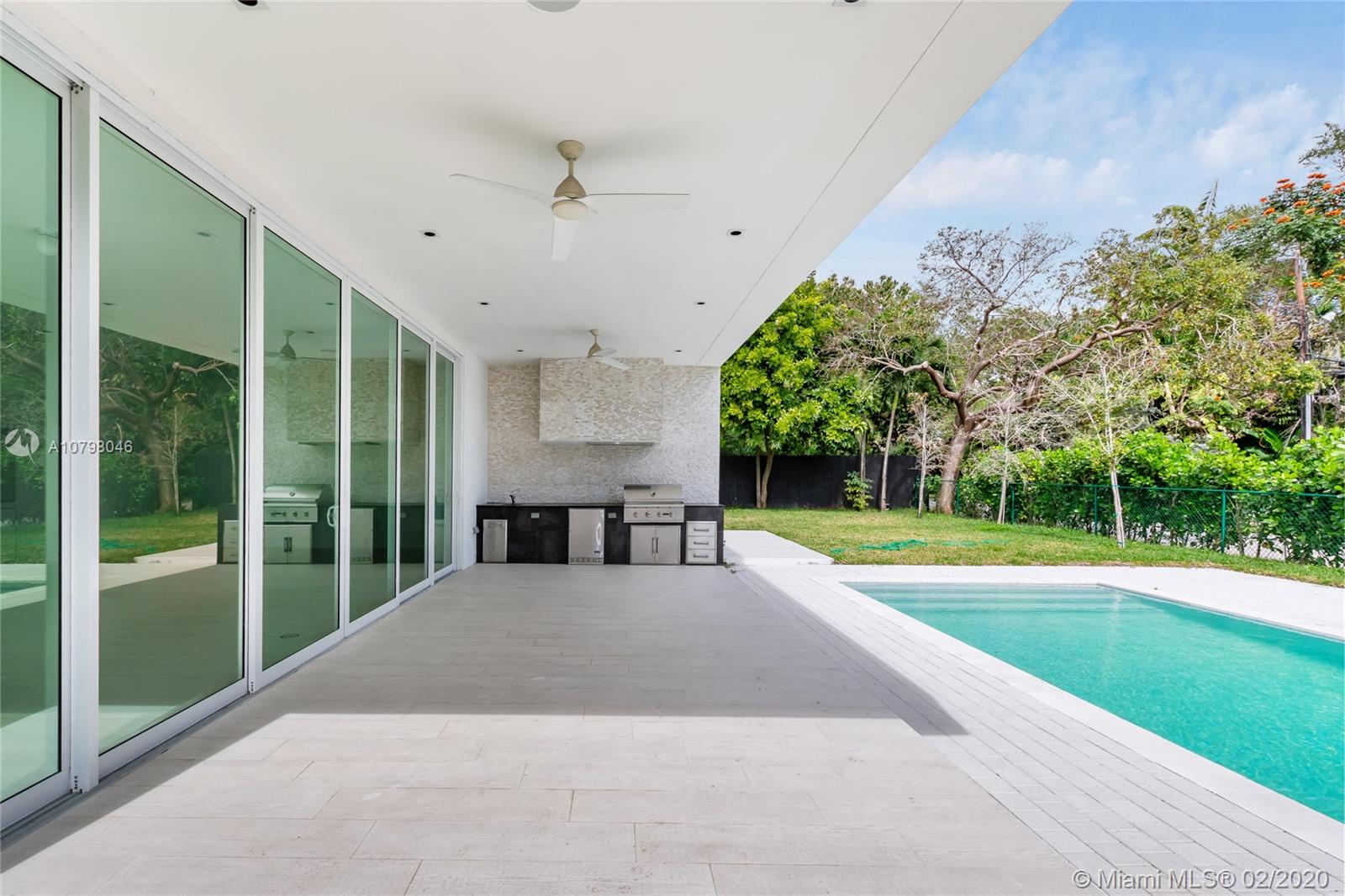 Spectacular contemporary modern new construction home in Coconut Grove. This one story house features an open floor plan with stunning entry w/ ultra high ceilings. There is an abundance of natural light with floor to ceiling sliding glass doors in the living areas, and porcelain floors throughout great room, dining and kitchen overlooking the wonderful outdoors. Enjoy the beautiful gourmet kitchen with high-end appliances and quartz countertops. The home sits on an 11,500sf corner lot. A modern terrace with outdoor summer kitchen and a comfortable extended entertainment area overlooks the pool.Floorplan features 3,455 Interior SF and total building 4,100 SF.EASY TO SHOW: Appointment through ShowingAssistance SUPRA LOCKBOX