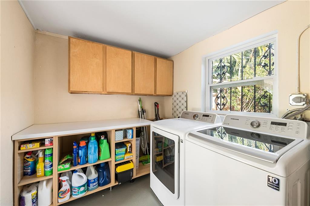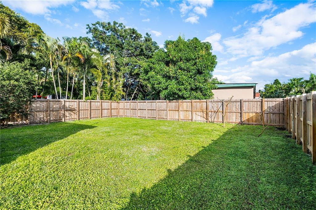 Once you enter the gates of this residence you will feel a sense of seclusion and total privacy. The front porch is perfect for coffee in the morning or cocktails in the evening. The privacy fence that surrounds the entire lot allows one to enjoy the verdant landscaping without the distractions from the street beyond. The floor plan offers multiple options with a large bedroom featuring en suite bath in the rear of the residence with separate entrance. Expansive Dining rooms that could certainly be used for a flexible space depending on your particular needs. Backyard is massive and perfectly suited for enjoying the South Florida lifestyle basically a beautiful grassy space that is a blank slate for your personal touches be it pool, spa or lush landscaping.