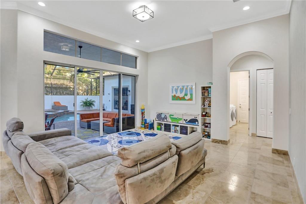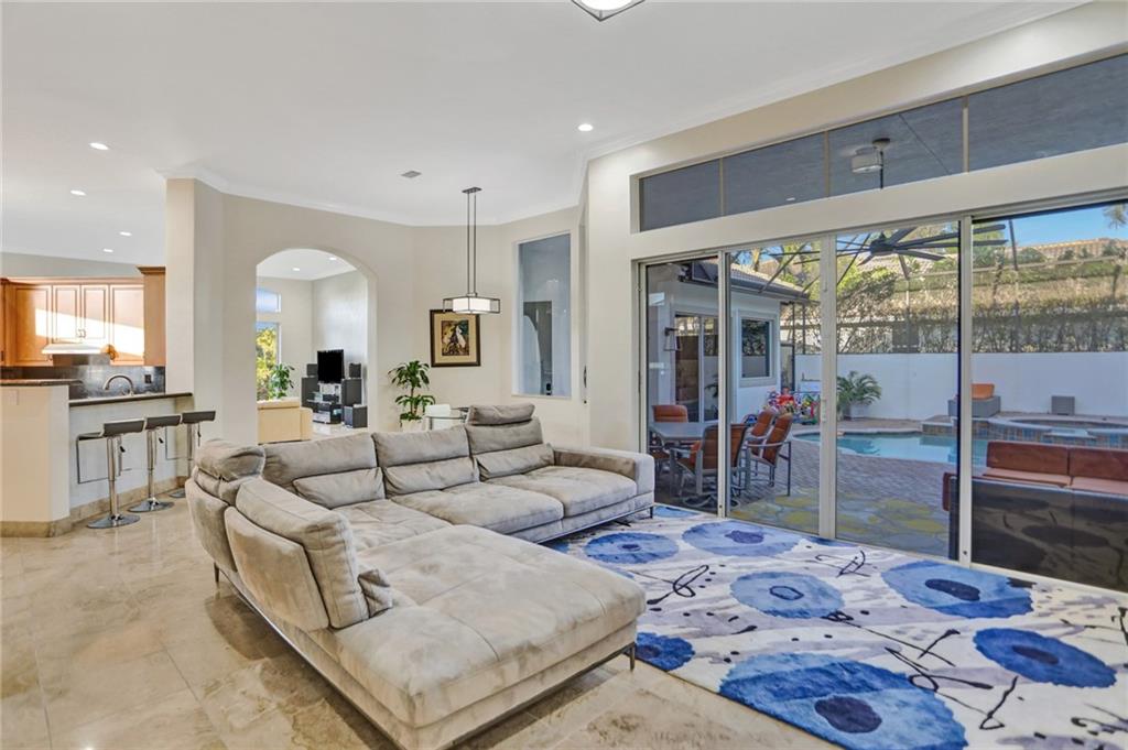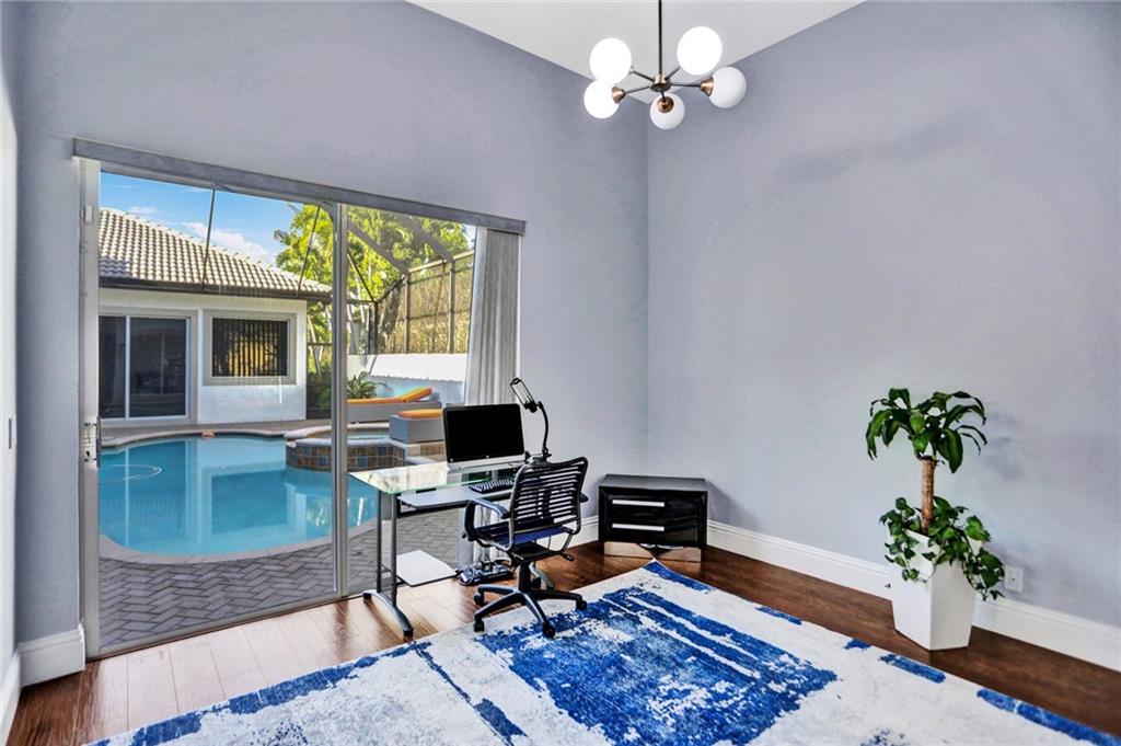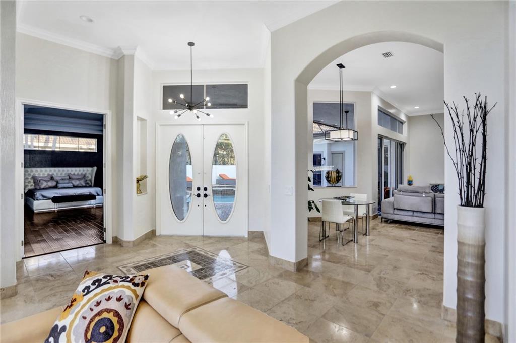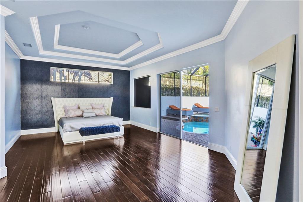 COURTYARD! Custom and extended THE MALIBU model. Modern updates galore in this unique water-front home in Heron Bay! Smart home features throughout! Enter into a screened heated pool/spa and a separate oversized 1bd/1bth guest house. Main house features smooth walls, fresh paint (exterior and interior), crown moldings, marble and wood floors, tray ceilings, 3-car garage, huge circular driveway & more! Split floor plan with a master suite with wood floors, huge built-in closets and luxurious master bathroom with soaking tub and dual shower heads. Other side: office, 2 large bedrooms have wood floors, built-in closets and plantation shutters. Granite kitchen with stainless steel appliances with center island. Large fenced backyard with wide water views and pristine lush landscaping!