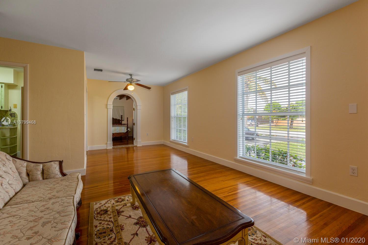 Fantastic home in Hot Hialeah! Spacious 4 bedroom/2 bath home...Beautiful foyer entry leads into living and dining area with gleaming wood floors. Private dining room can also be set up as a family room. 3 bedrooms and 2 baths are on 1 side of home with updated jack and jill bathroom. 2nd bathroom is in good condition - a retro 1950's style. Bedroom #4 is off living dining area...this room can serve as a guest room or den/office as well. Kitchen has a great working space and in very good condition. Most of the window are updated. New roof from about 15 months ago, new AC from 2018, updated electrical. Great circular driveway with great curb appeal on this home. Back yard extends 134 feet with private laundry room, tool shed too! This home is a winner!