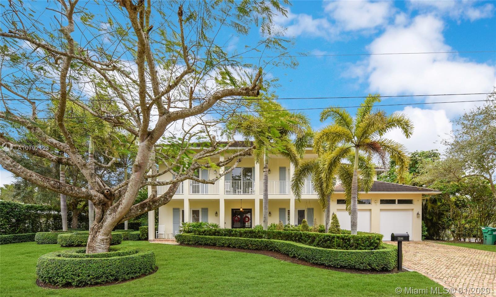 Key West style home (built 2007) impeccably maintained in prestigious Village of Pinecrest! 5 Bedrooms (hard wood floors) full of natural light. Exterior porches all around, protected by impact doors/windows. 5-1/2 Baths (limestone floors) including Cabana Bath. Heated pool with salt-water pump. Large Open Kitchen with breakfast nook, Granite Counter-tops, Wolf brand Gas-Stove & Oven, Stainless Steel Appliances, and enormous walk-in Pantry. Family Room downstairs + Family Room upstairs with wet bar kitchenette. Formal Dining Room and formal Living Room with gas-burning fireplace. Built-in Outdoor/Indoor speaker system. 8 zone security camera system. Plantation blinds. Large capacity Generator with auto on/off switch. 2-car garage with cabinetry. 2 docks with davits leading to ski-lake.