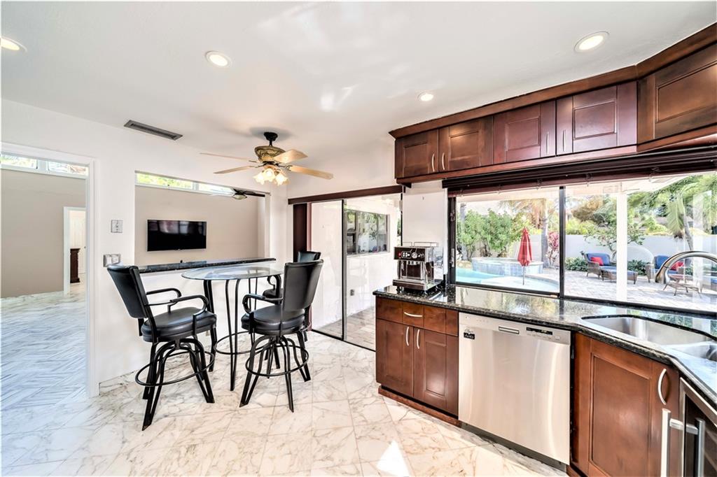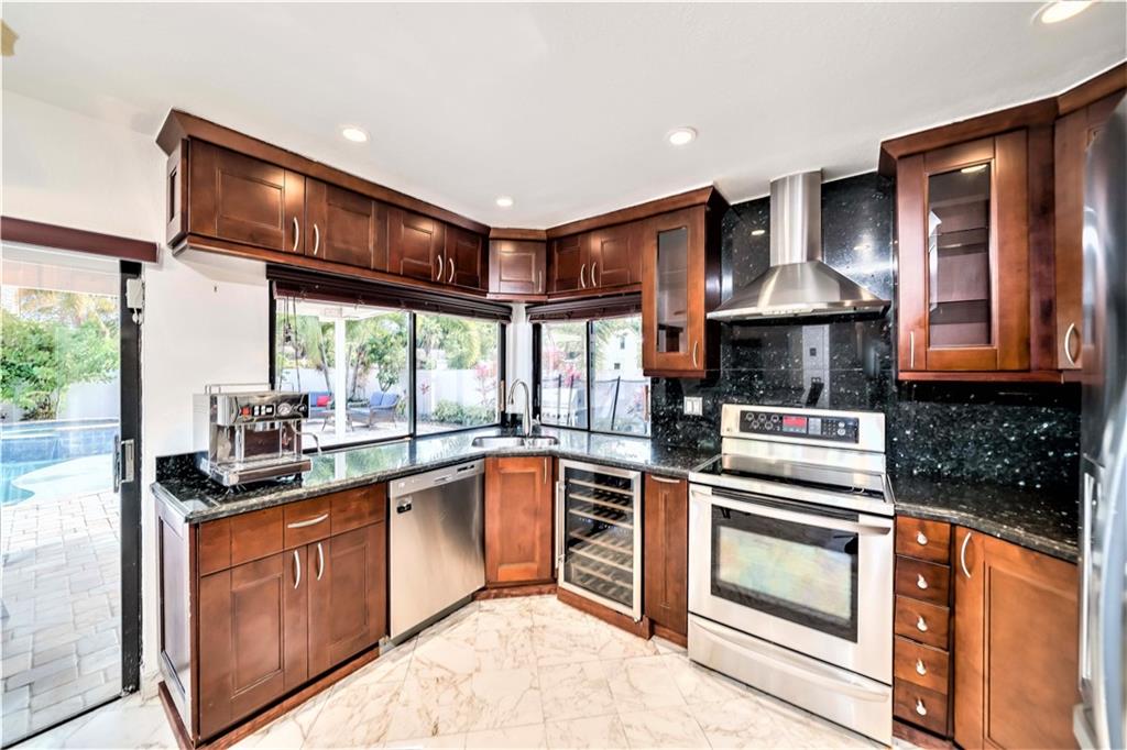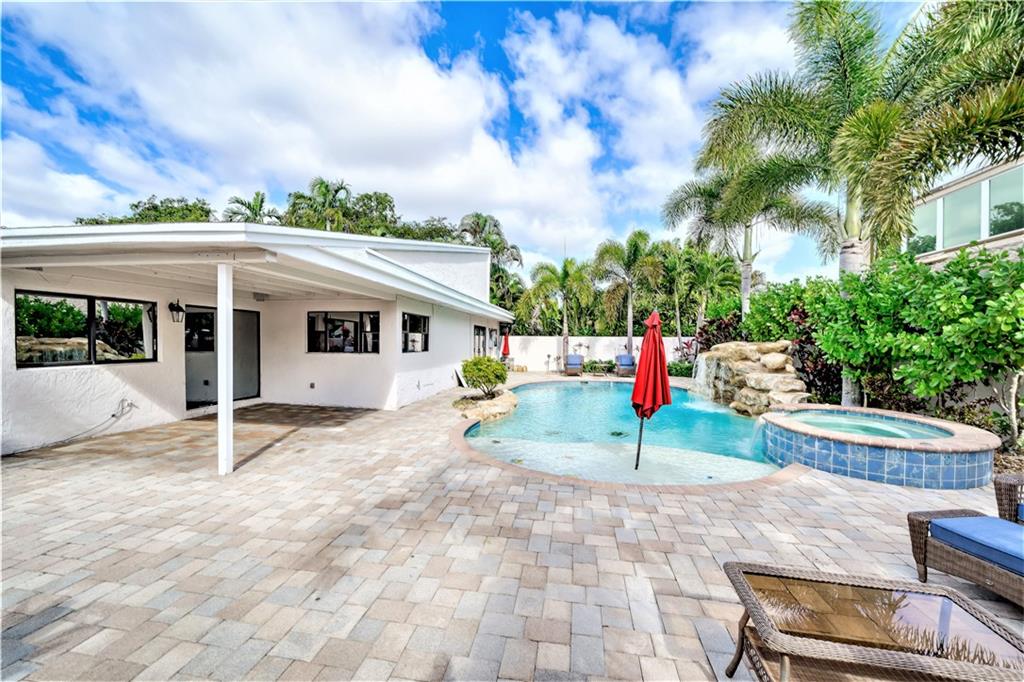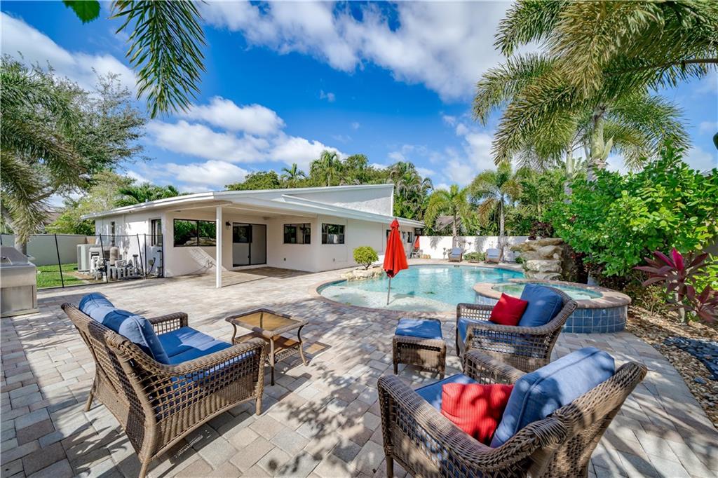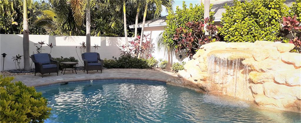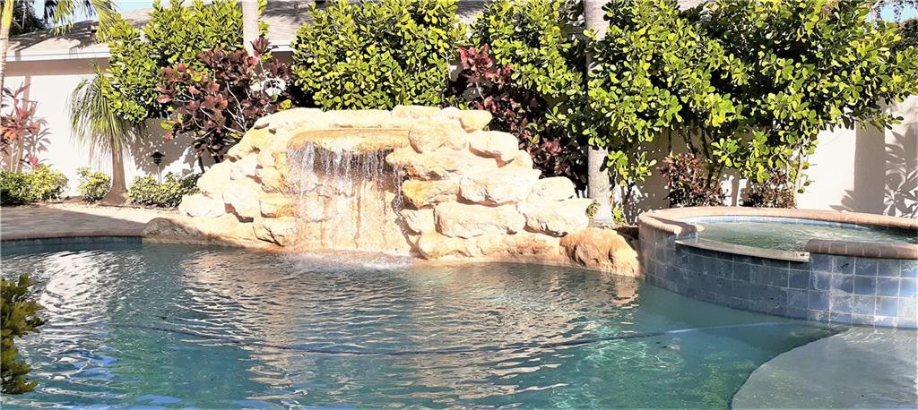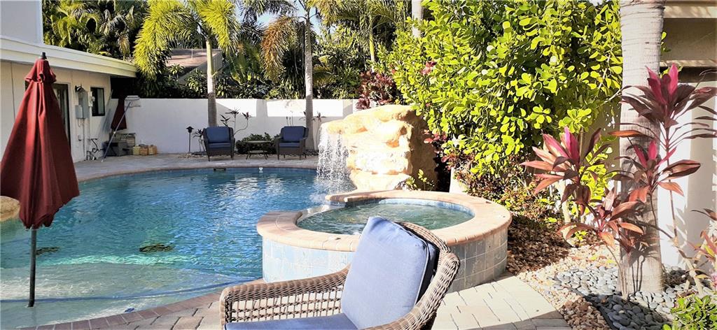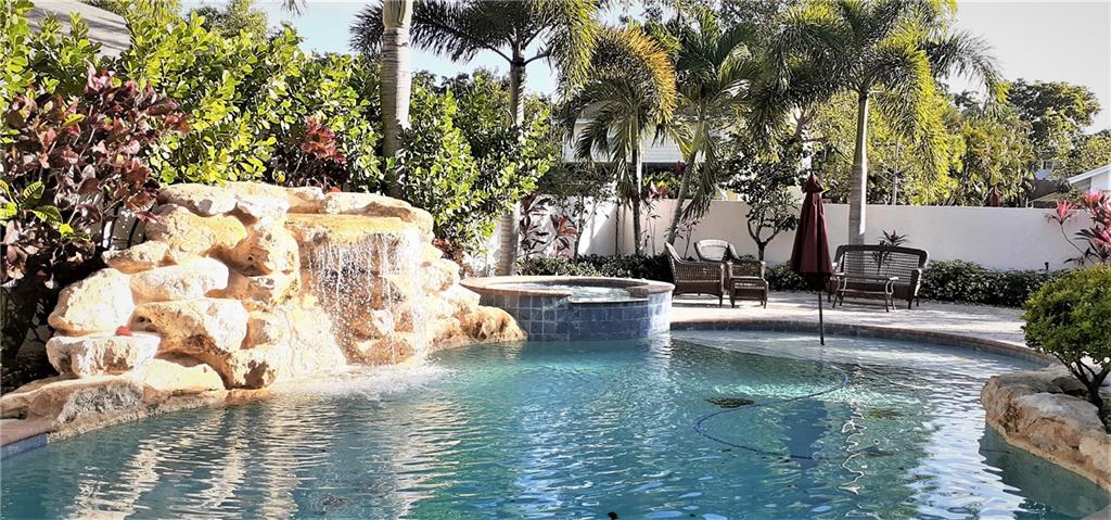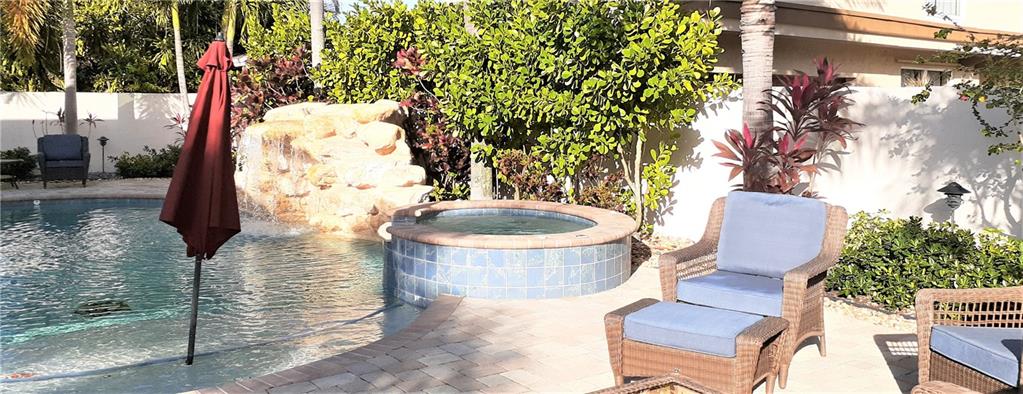 Rare chance to own a lovely well kept one-story home on large corner lot in desirable Plantation community! it features a gated surrounding wall that offers privacy and feeling of security! Welcome to a piece of the tropics while relaxing by secluded saltwater pool, hear sound of running waterfall flowing peacefully over the grotto, or sit in your own soothing spa while your children play on large beachlike ledge of pool! Volume ceilings feel spacious and open, High functioning new kitchen has gorgeous sparkling granite on countertops, high-end stainless steel appliances and even a built-in cappuccino maker & wine cooler! Big master bedroom with updated bath has impact french doors, overlooks pool area! Roof approx. 10 years, Tankless H2o heater 2017, new washer,dryer.Much more!