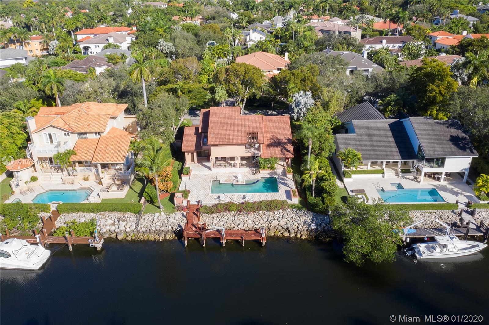 Waterfront 2-story in Islands of Cocoplum. Circular driveway & beautiful landscaping leads to front entrance. Well-appointed home w/high ceilings, open spaces & water views from almost everywhere. Large living rm,dining rm and wet bar. The eat-in kitchen overlooks the pool & waterway. Family rm & cabana bath are adjacent to the kitchen. Across the hallway there is a powder room, laundry, 1 bedrm & bath. Upstairs, the large main suite has a walk-in closet & a spacious bathrm w/2 sinks, shower,& jetted tub/spa. Spiral staircase access to pool. 2 balconies overlooking the waterway. Additional 2 bedrms w/walk-in-closets, 2 baths & office on 2nd floor. Covered terrace and spacious outdoors terrace, 20'x40' pool, 42’ dock w/davits, water & electricity. 2-car garage. Full hurricane protection.
