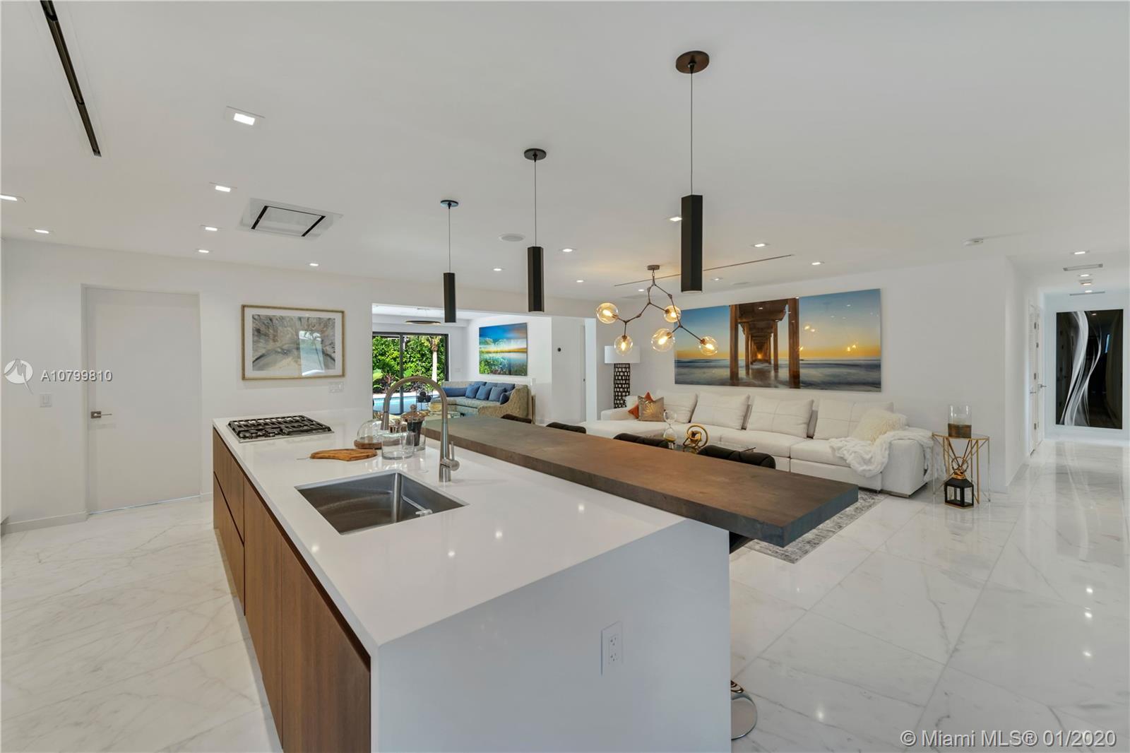 "MIAMI BEACH MEETS MIAMI SHORES" with this gorgeous fully remodeled home. This stunning masterpiece features 4 bedrooms each with full bathrooms en-suite. Impeccably designed with no expense spared. This residence boasts 24x48 White Carrera Marble, custom Mia Cucina kitchen with quartz countertop, Sub-Zero Wolf appliances, full guest bathroom, laundry room, gas tankless water heater and stove, Sonos surround sound, and security system. The one of a kind master bedroom suite will leave you speechless with its designer closet and Armani Roca marble bathroom. The outside of the home is beautifully adorned with new landscaping, sprinkler system, salt water pool and accent lighting throughout. Truly a turn-key gem in the best location of Miami Shores just steps away from the bay.