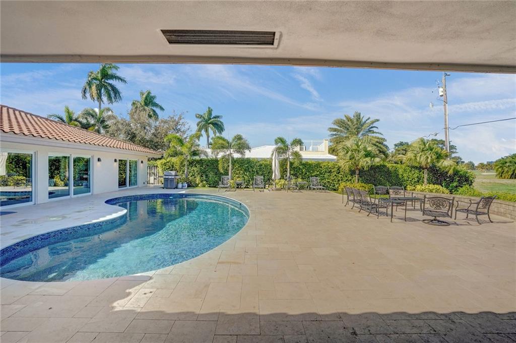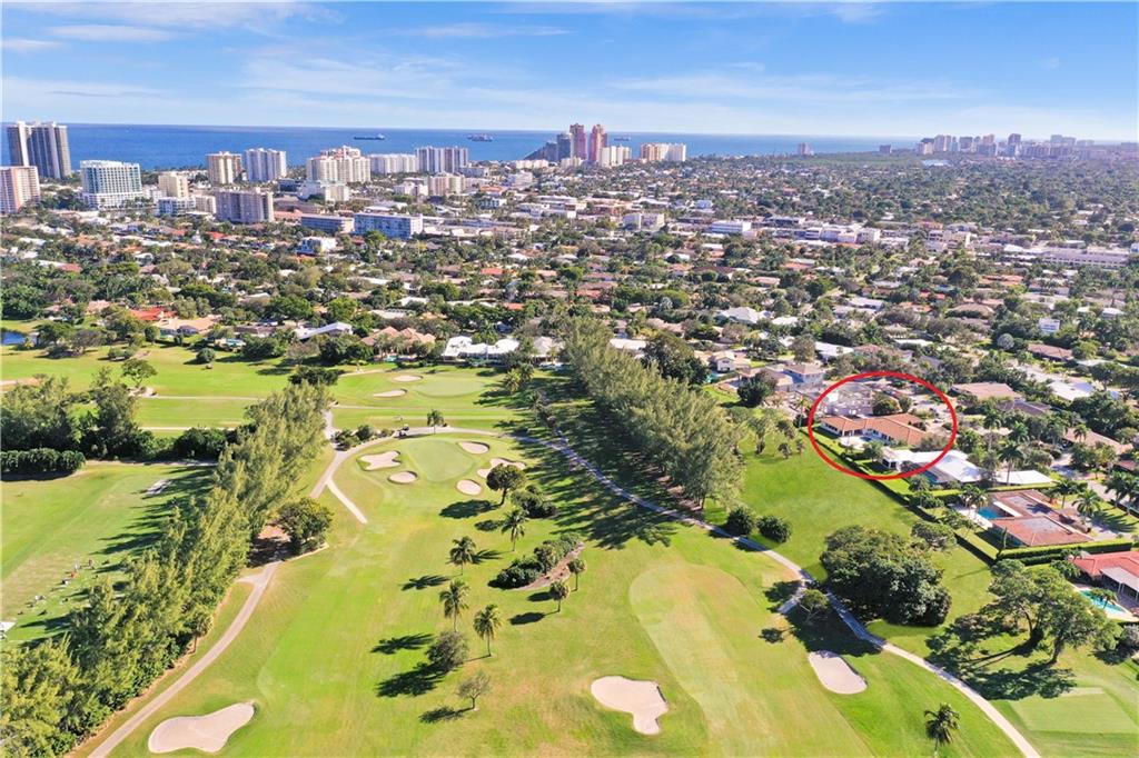 Stunning single-story estate with the best views on the Coral Ridge Country Club golf course. Brand new course renovation has forever changed the views-direct East views to the Clubhouse over 580 yards (.33 mile) away! This home has been completely renovated in 2016 to include raised ceilings in living areas, kitchen, bathrooms, flooring, Impact Windows and Doors, and more. Open living space with plenty of natural light. Gourmet kitchen boasts Statuario Marble countertops and backsplash, Thermador gas range and white shaker cabinetry. Expansive master suite features two walk-in closets and spa like bath with dual vanities, clawfoot bathtub and shower. Huge second family room (800 sq ft) with wetbar, vaulted ceilings and full bath. 21,000 sq ft lot (175' deep). No golf membership required.