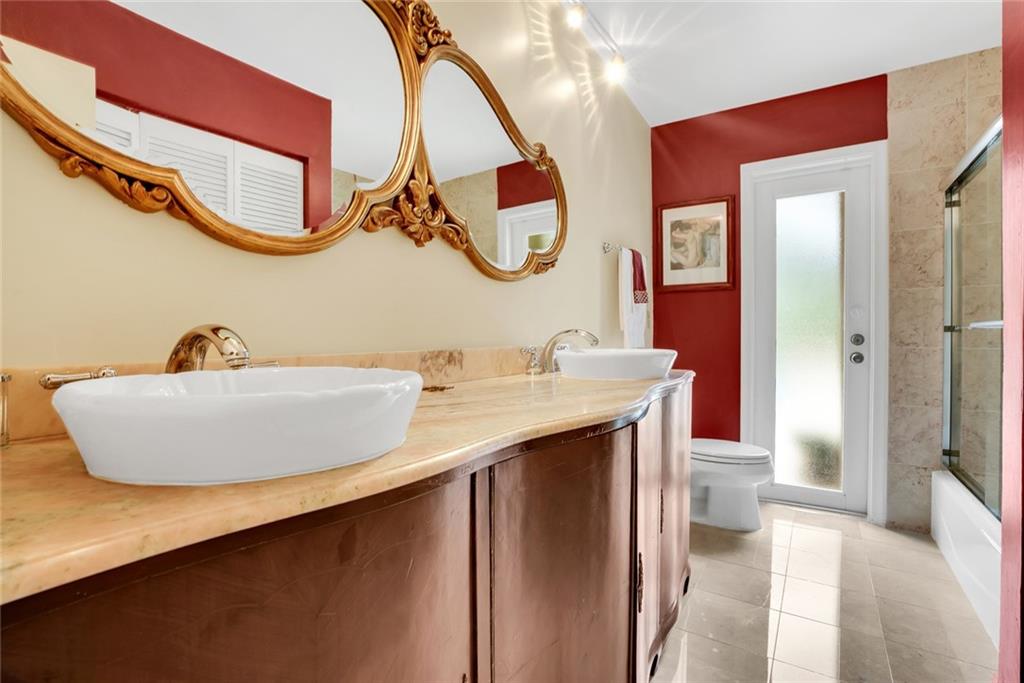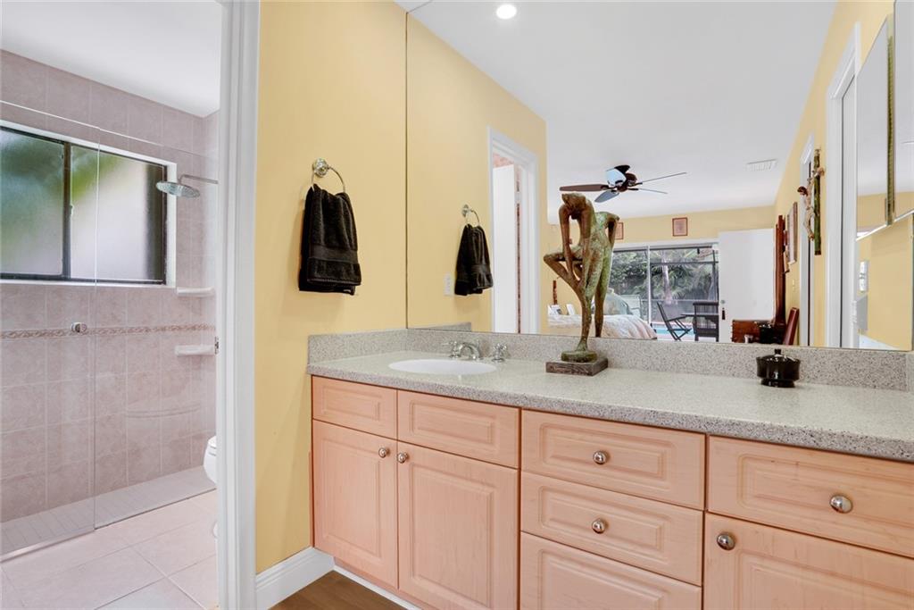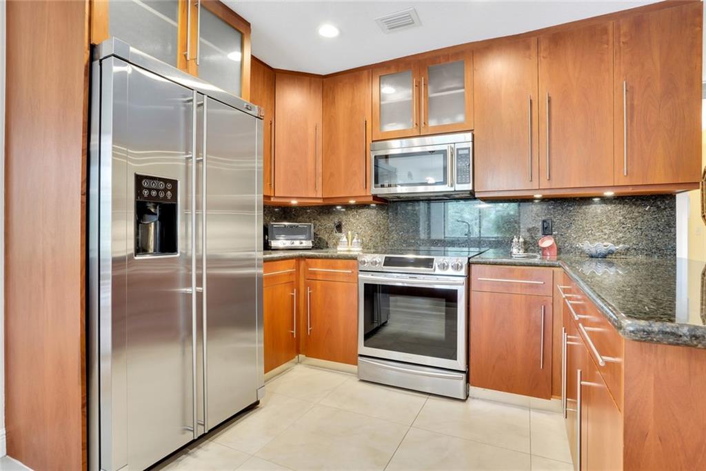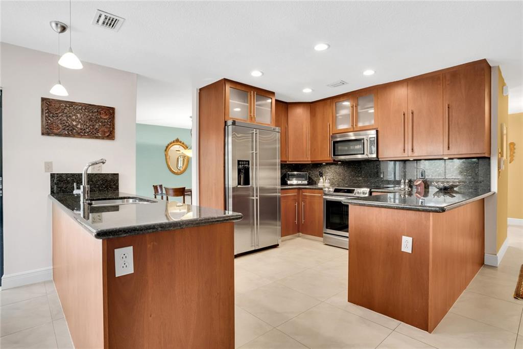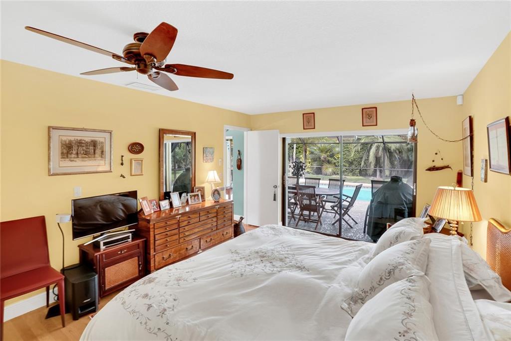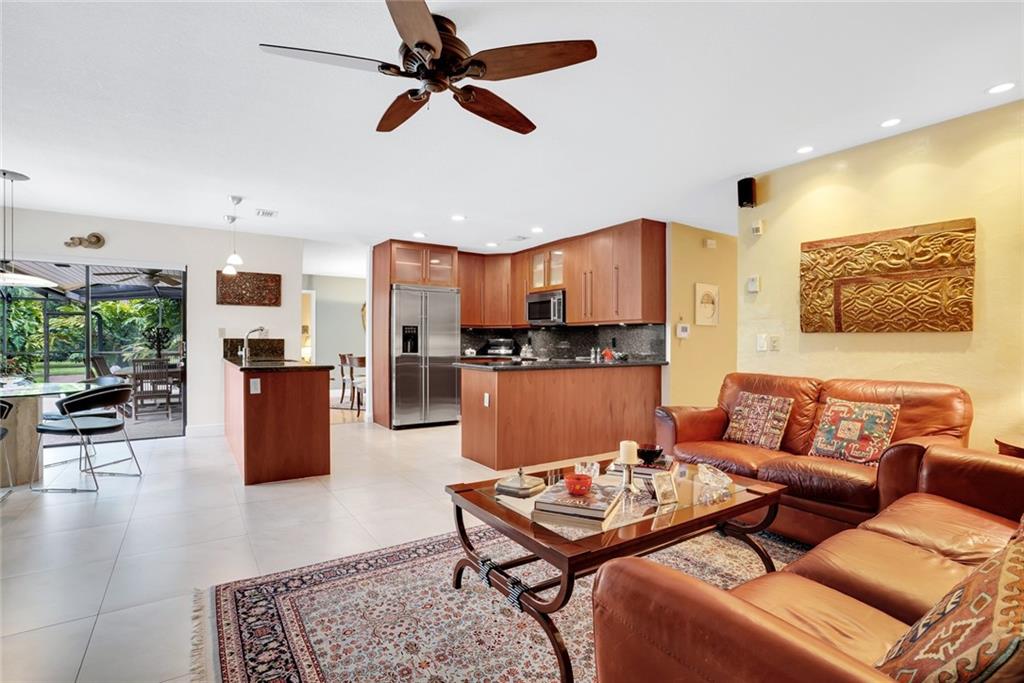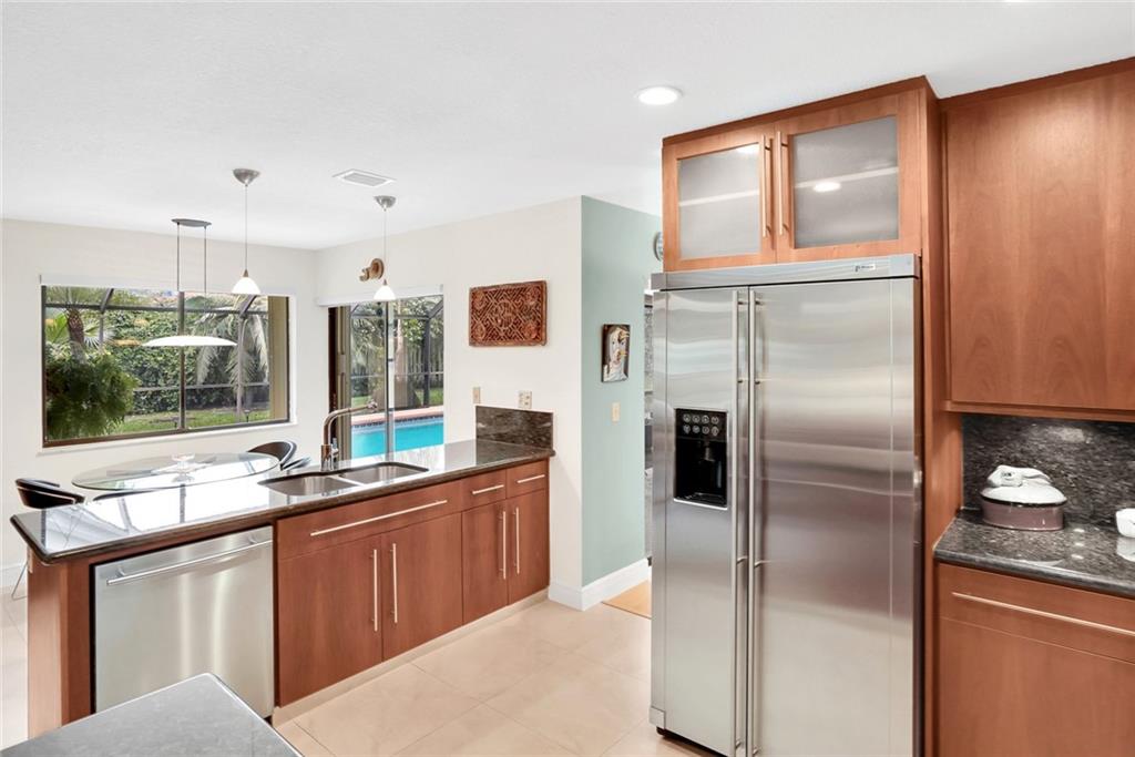 Fully updated home on an extra wide tropical lot in the back of a cul-de-sac for privacy & security. Lots of exotic trees and plants make for a true gardener's dream and tropical paradise. Featuring a split bedroom plan for privacy with generous sized bedrooms. Master bedroom features his & hers walk-in closets. Master bath features a double vanity and updated bathroom w/ frameless glass shower door. Kitchen features high end appliances including a GE Monogram fridge, modern real-wood cabinets, and granite counter tops. Tile & wood flooring throughout the house - NO CARPET! No HOA! NO POPCORN CEILINGS! 2nd bathroom has also been updated and has a cabana door leading out to the screened-in pool w/ updated deck & large covered area.