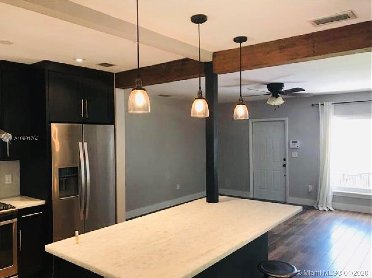 Miami Shores quiet neighborhood. Split floor plan, master suite includes bathroom & floor-to-ceiling closets. Large chef's open kitchen with granite counter tops, stove, convection oven, dishwasher, microwave, large refrigerator, pantry, and lots of cabinets. Dining room has large windows, living room opens to backyard terrace. This home is perfect for entertaining indoors & out. Large fenced tropical yard has a lot of trees. All impact windows,Large shed with electricity.