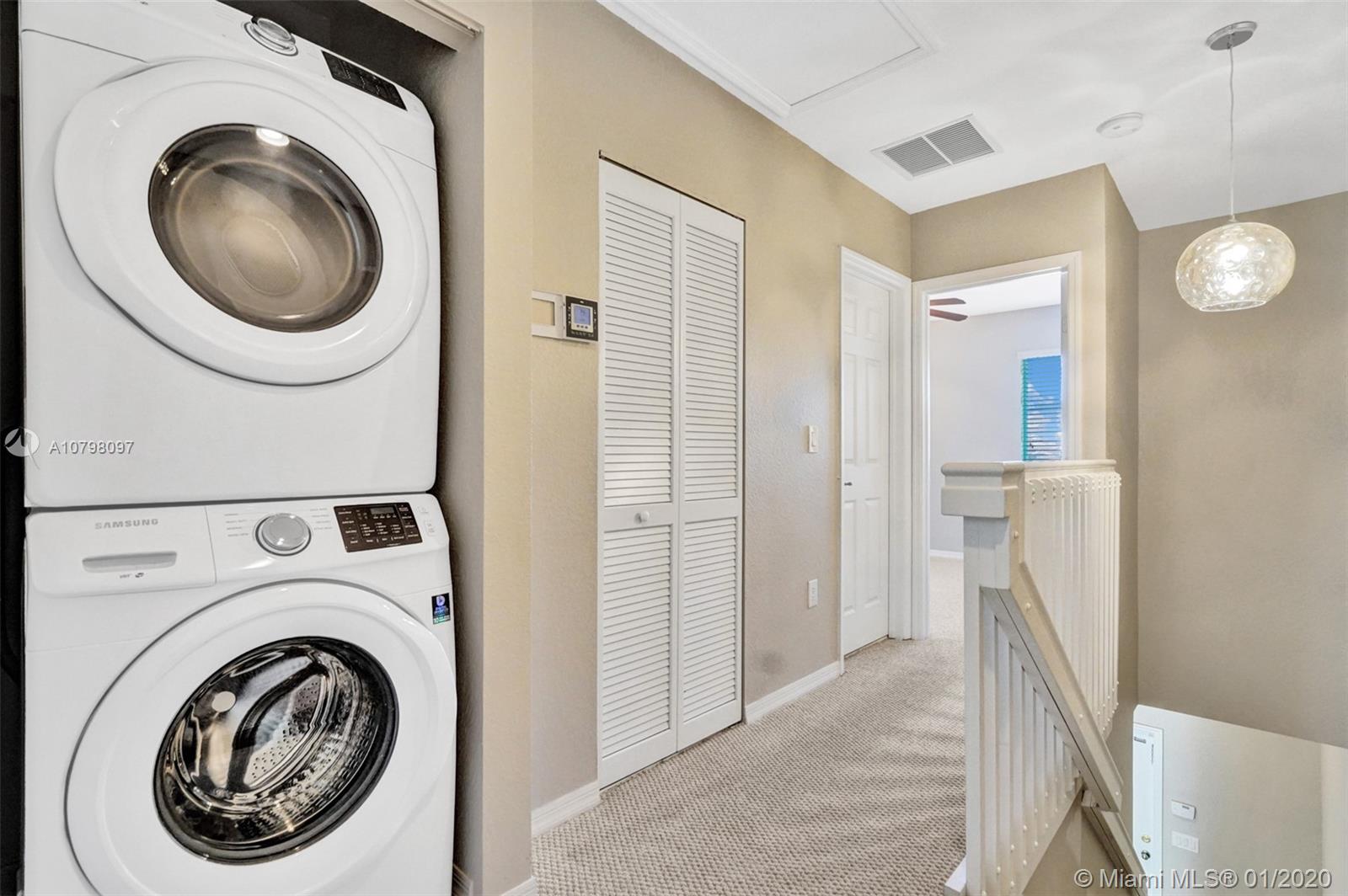 A bright updated 2 bed, 2.5 bath townhouse in a gated community. Granite counter tops and stainless steel appliances in the kitchen. Hurricane impact windows and sliding glass door. Fresh paint, new flooring downstairs, new carpet upstairs and new light fixtures. Full size front load Samsung washer & dryer upstairs. Tankless water heater allowing extra storage downstairs. AC replaced in 2017. Perfect starter home for a single person or small family. This unit is located in a great location within the community. Zoned for the A-Rated Sea Castle Elementary. Trucks are ok. Community pool & playground. Two assigned parking spots. One of the lower associations in the community. Association requires 700 credit score.