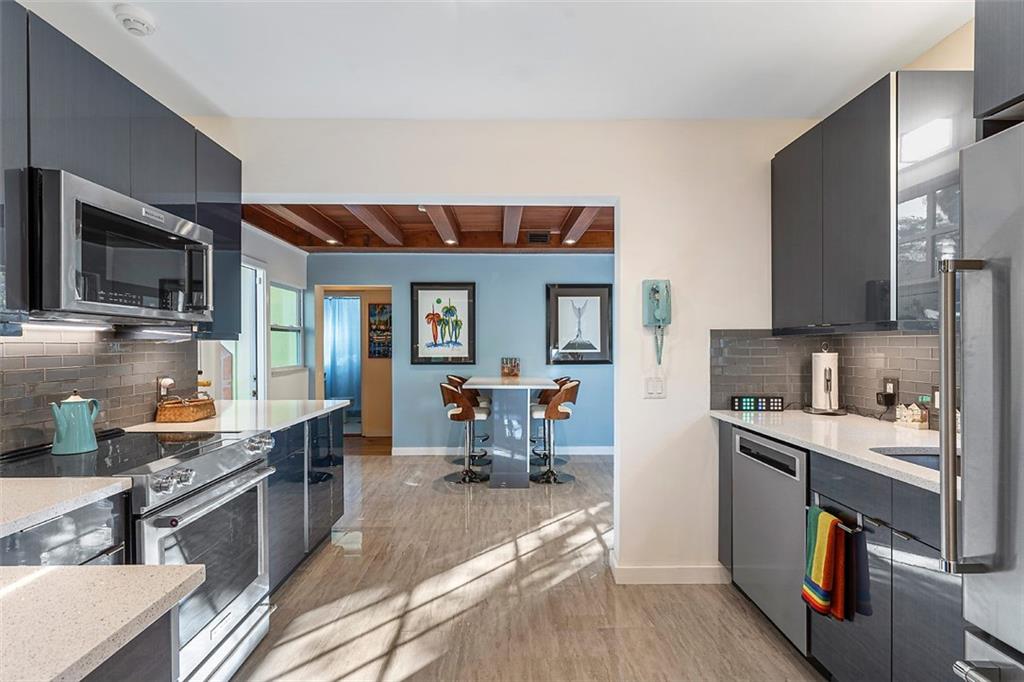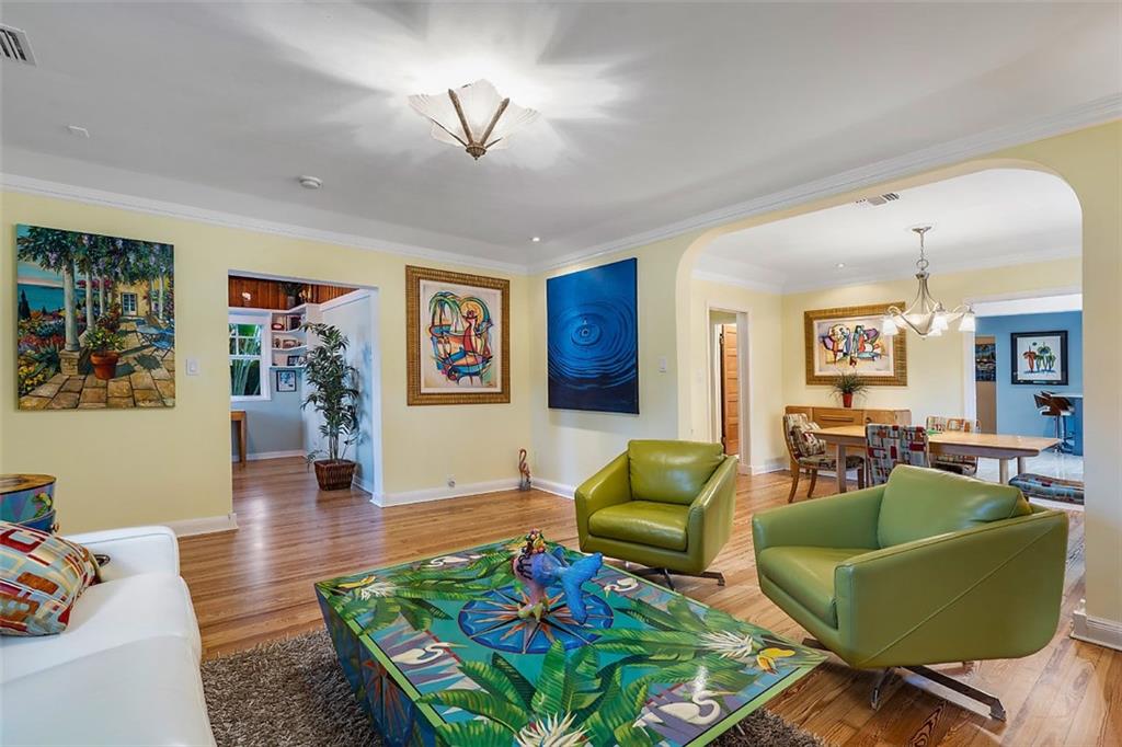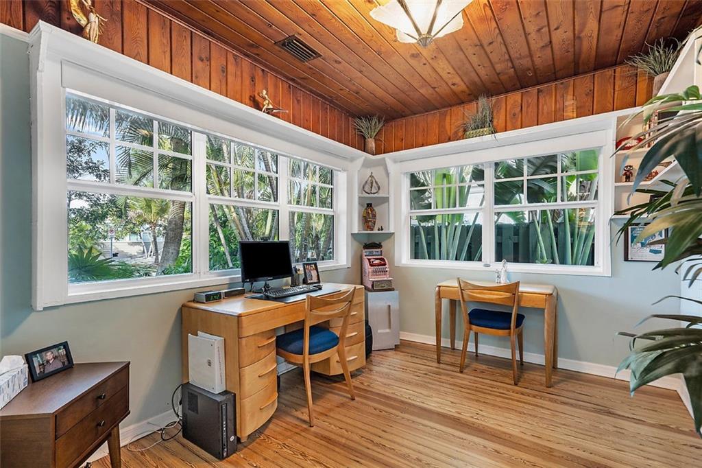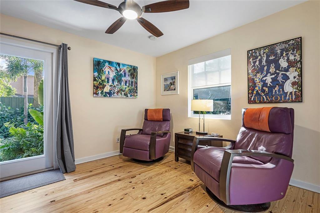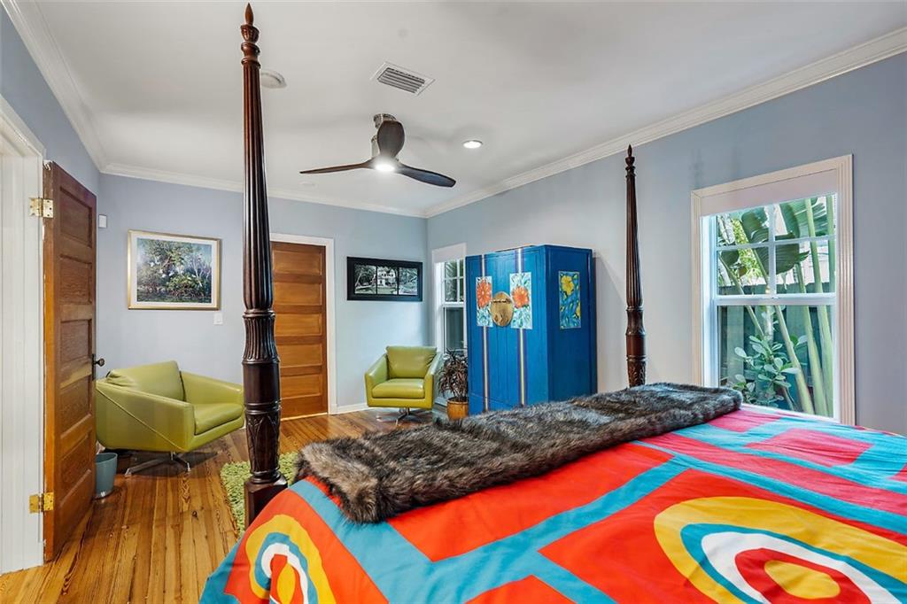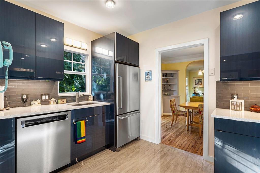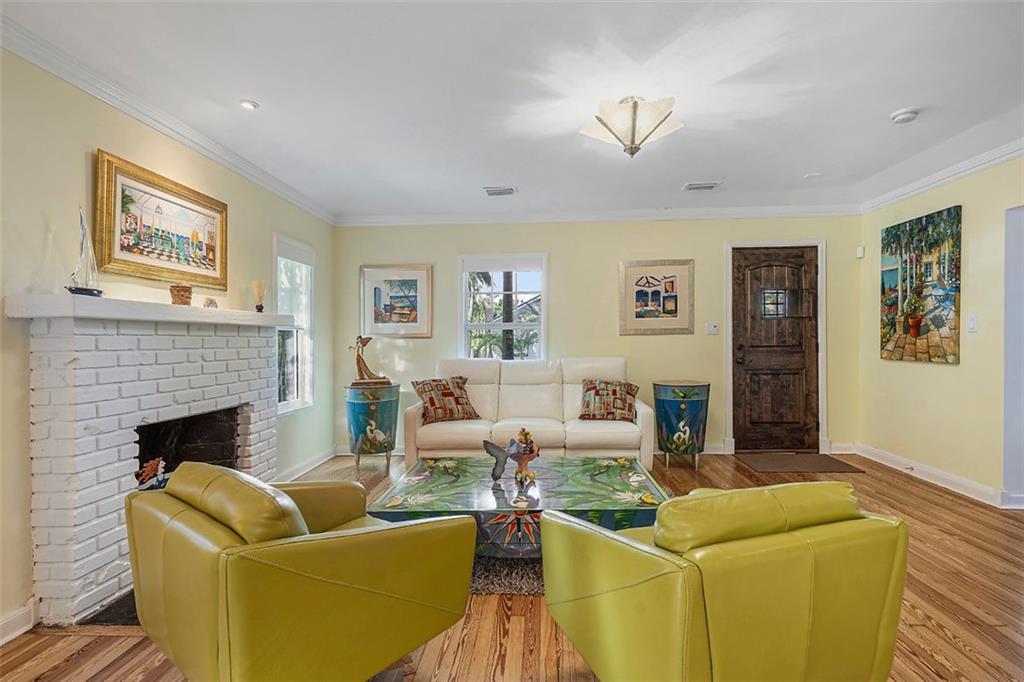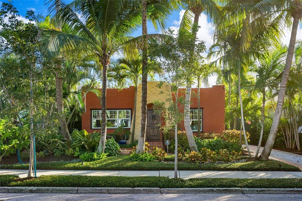 Nestled behind lush landscaping and mature coconut palms sits this beautifully renovated 1920's historical masterpiece. Located on a quiet one-block long street in the highly desirable Grandview Heights Historic District, the home is elegant and inviting. Beautifully restored Dade County Pine floors, crown molding, impact-rated windows, central AC, brand new large eat-in kitchen with Kitchenaid stainless steel appliances. Newly renovated outdoor spaces offer lush tropical landscape, brick pavers, and room for a pool (see rendering photograph). Large master suite with a walk-in closet and sitting area. Off-street parking for 2 cars. Minutes to Palm Beach, Grandview Market, walking distance to CityPlace, restaurants and nightlife. A Historic Tropical Treasure for the Discerning Buyer.