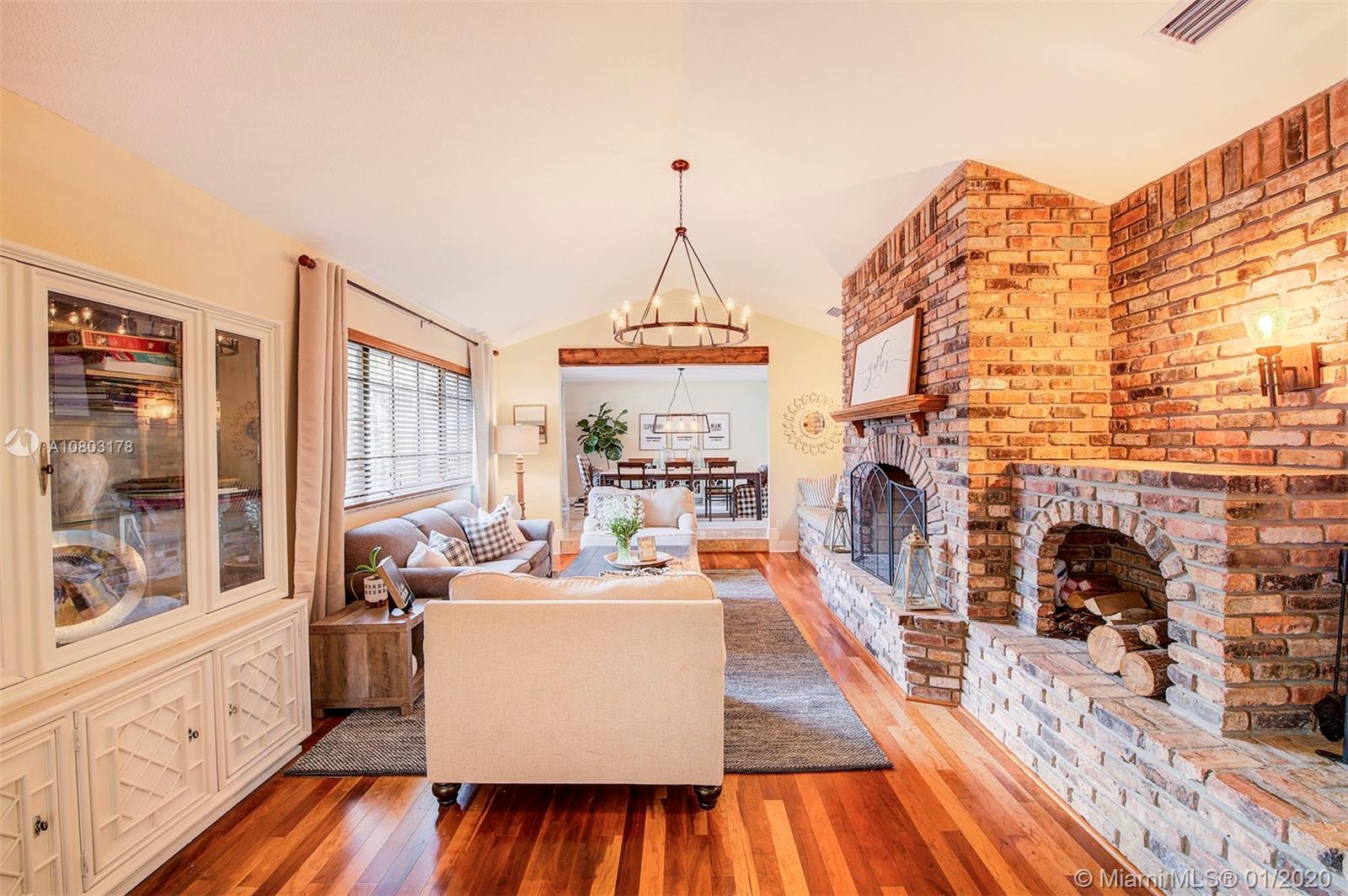 Step inside this ONE OF A KIND spectacular 5 bedroom 3 bathroom home with a pool sits on an oversized pie shaped lot at the center of a private cul-de-sac! Custom designed home that offers a split floor plan (in law living quarters with own bathroom), Specially designed indoor and outdoor gorgeous brick fireplaces. NEW ROOF, HURRICANE IMPACT WINDOWS, BRAND NEW AC/AIR DUCTS, BRAND NEW SOLAR PANEL/POOL PUMP AND CHILD SAFETY GATE, 24X24 Porcelain tile flooring, NEW ENGINEERED WOOD FLOORING in rooms, BRAND NEW WATER HEATER. CUSTOM BUILT Wet Bar! Master Bath/2nd bathroom all redone. 2 car garage, NEW landscaping + fencing, SURROUND SOUND SPEAKER INDOOR AND OUTDOOR, SMART HOME (RING DOOR BELL/SMART SWITCHES/ 24/7 Camera surveillance), Two separate oversized yards! OVER $200,000 in upgrades!!