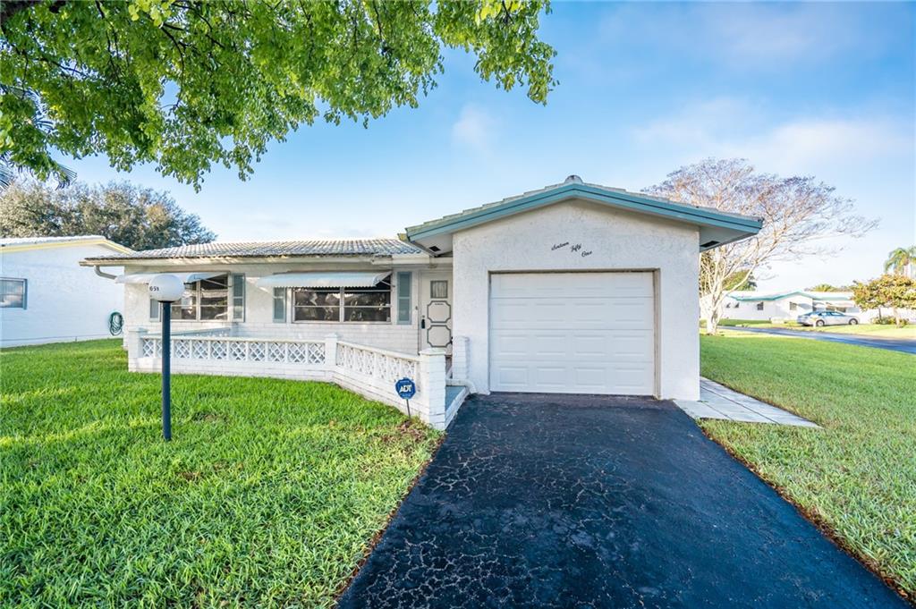 SELLER MOTIVATED: 2 bed 2 bath 1 car garage Admiral model in highly desirable Lauderdale West. This is lowest price single family home in this housing for older persons development (55+). All outside maintenance, including roof plus cable TV & Hi Speed Internet included in LOW monthly maintenance payment. Extremely active clubhouse with many clubs and entertainment (Pool/Billiards/Ping Pong/Tennis/2 Pools/2 Hot tubs/Saunas/ Wood Working Shop/Arts & Crafts room/Excellent Gymnasium and much more!). Walk to Publix, restaurants and only minutes from airport and cruise port. Corner lot with a lot of yard and very little traffic & plenty of closet space. This home is great opportunity to make it your own style. ALL OFFERS CONSIDERED